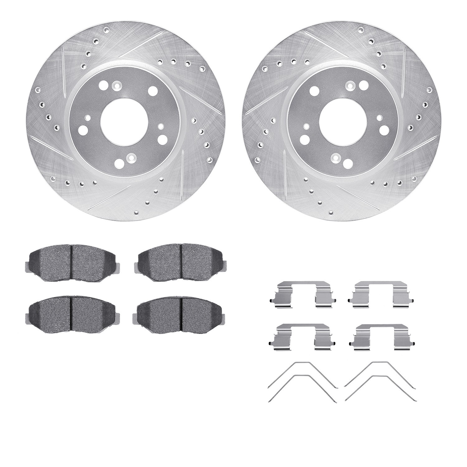 - DFC Rotors-Drilled & Slotted-Silver w/ 5000 Advanced Brake Pads Incl Hdw