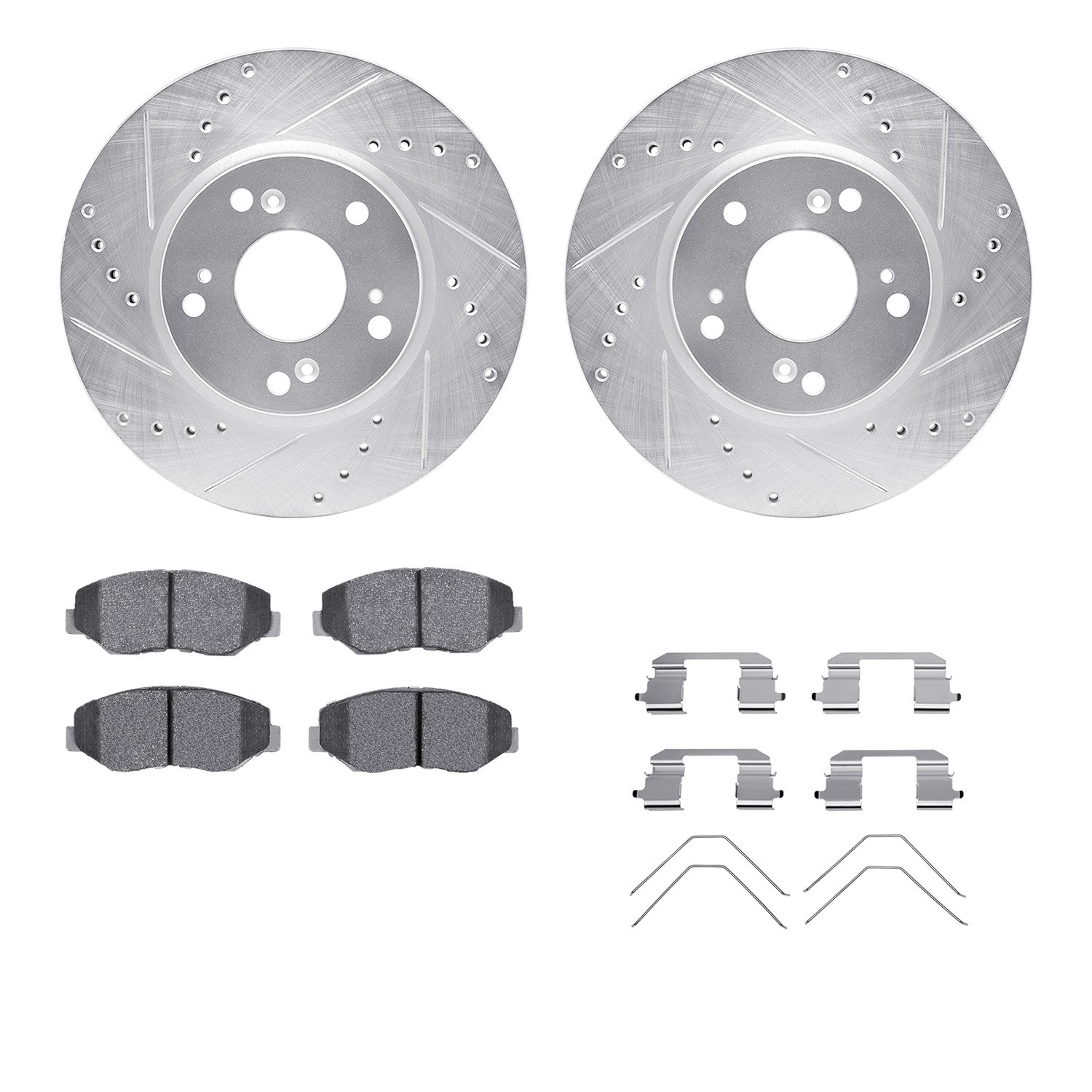 - DFC Rotors-Drilled & Slotted-Silver w/ 5000 Advanced Brake Pads Incl Hdw