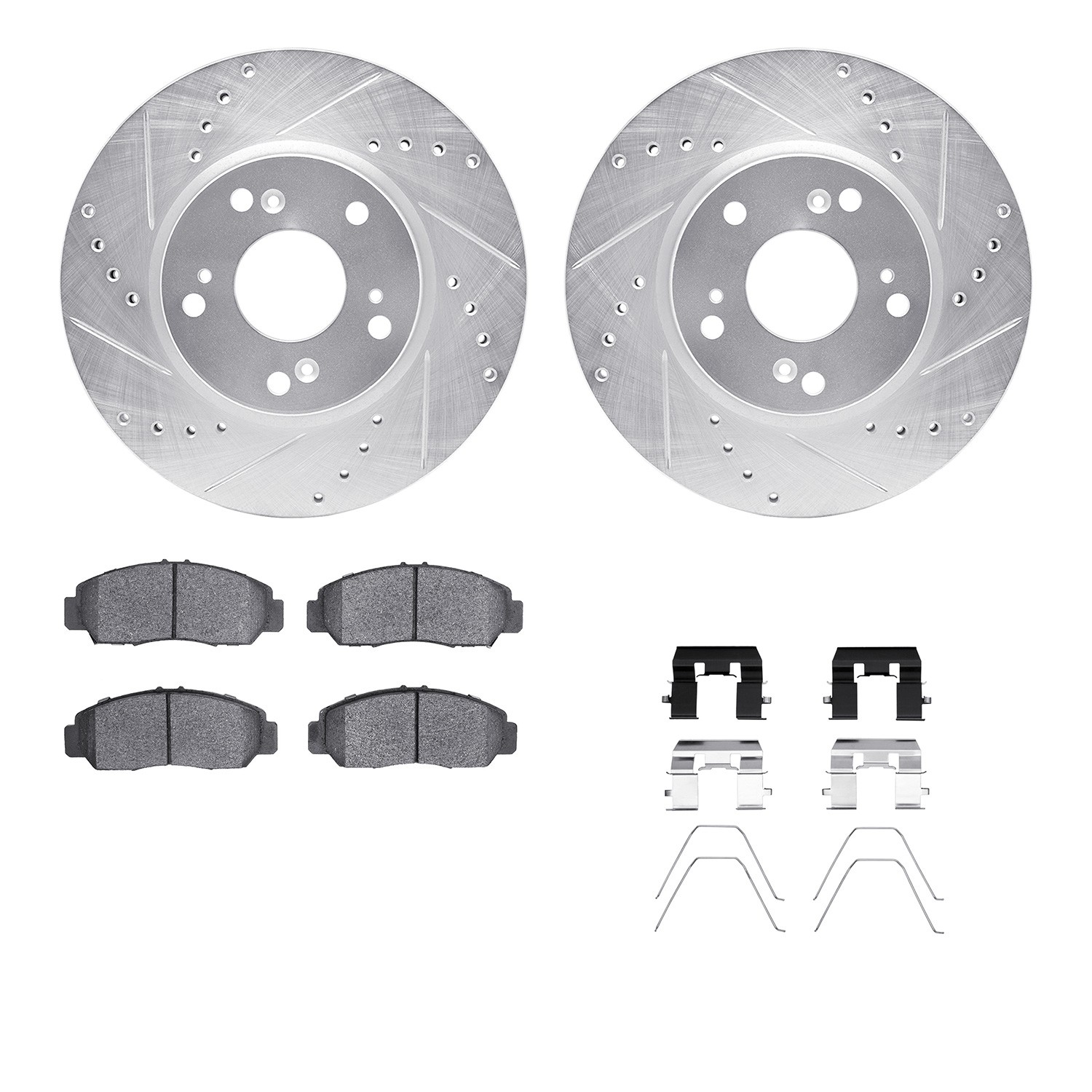 - DFC Rotors-Drilled & Slotted-Silver w/ 5000 Advanced Brake Pads Incl Hdw
