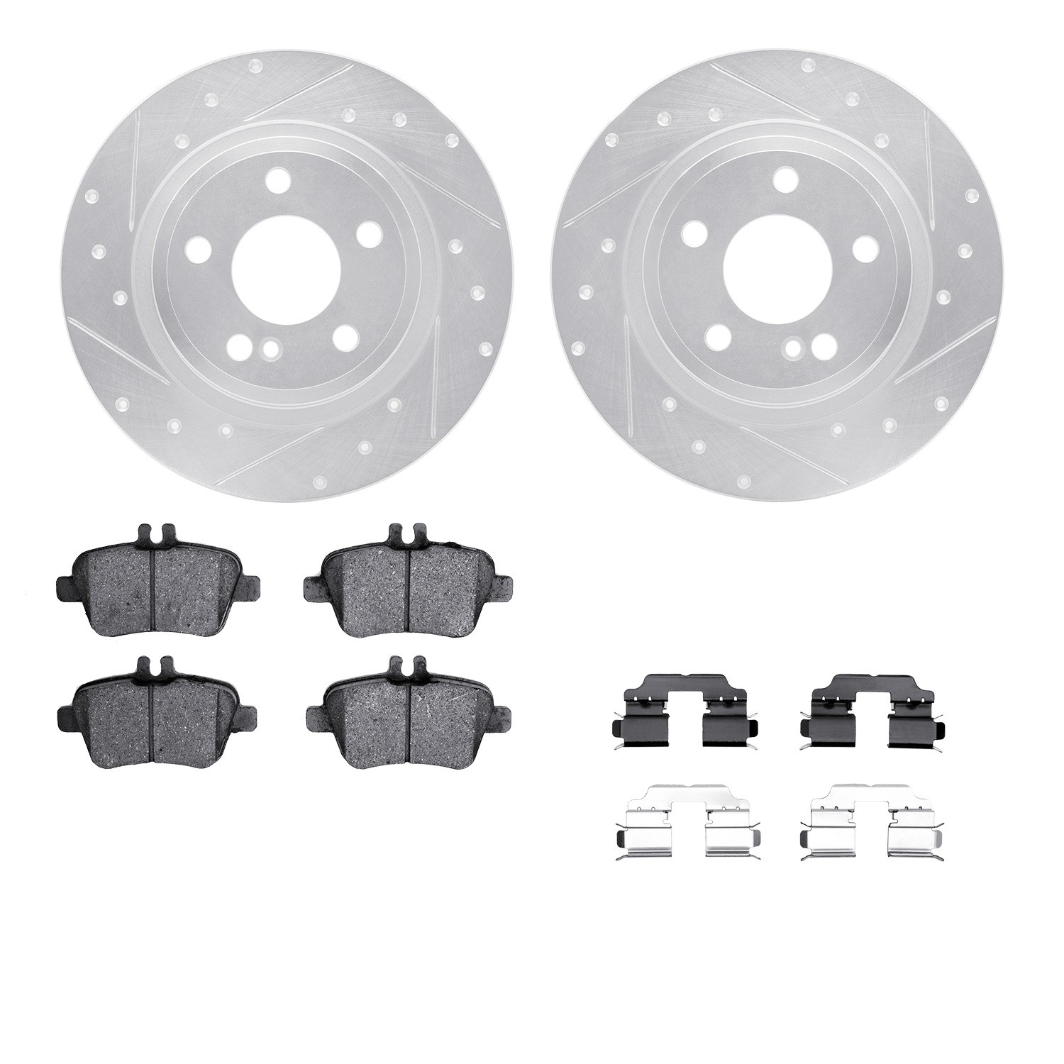 - DFC Rotors-Drilled & Slotted-Silver w/ 5000 Advanced Brake Pads Incl Hdw