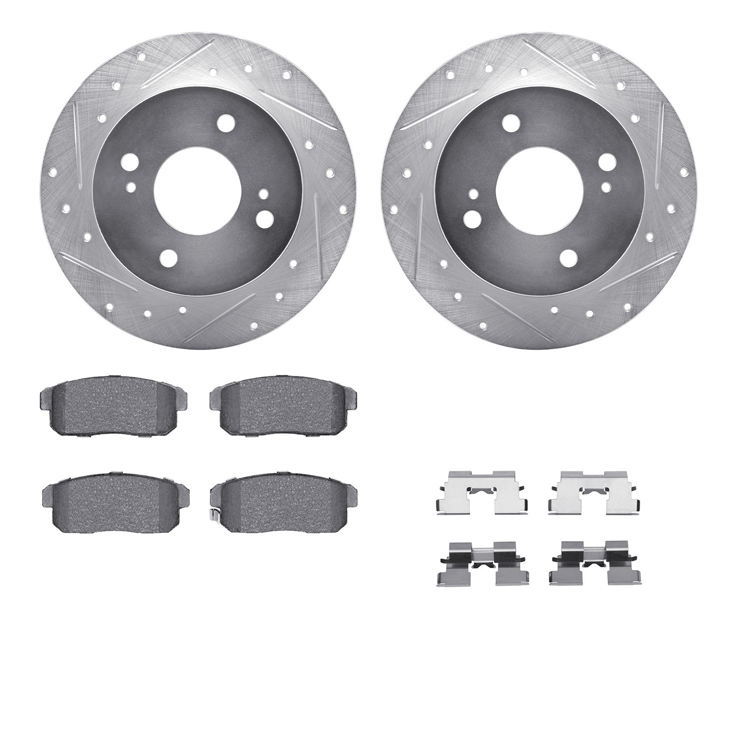 - DFC Rotors-Drilled & Slotted-Silver w/ 5000 Advanced Brake Pads Incl Hdw