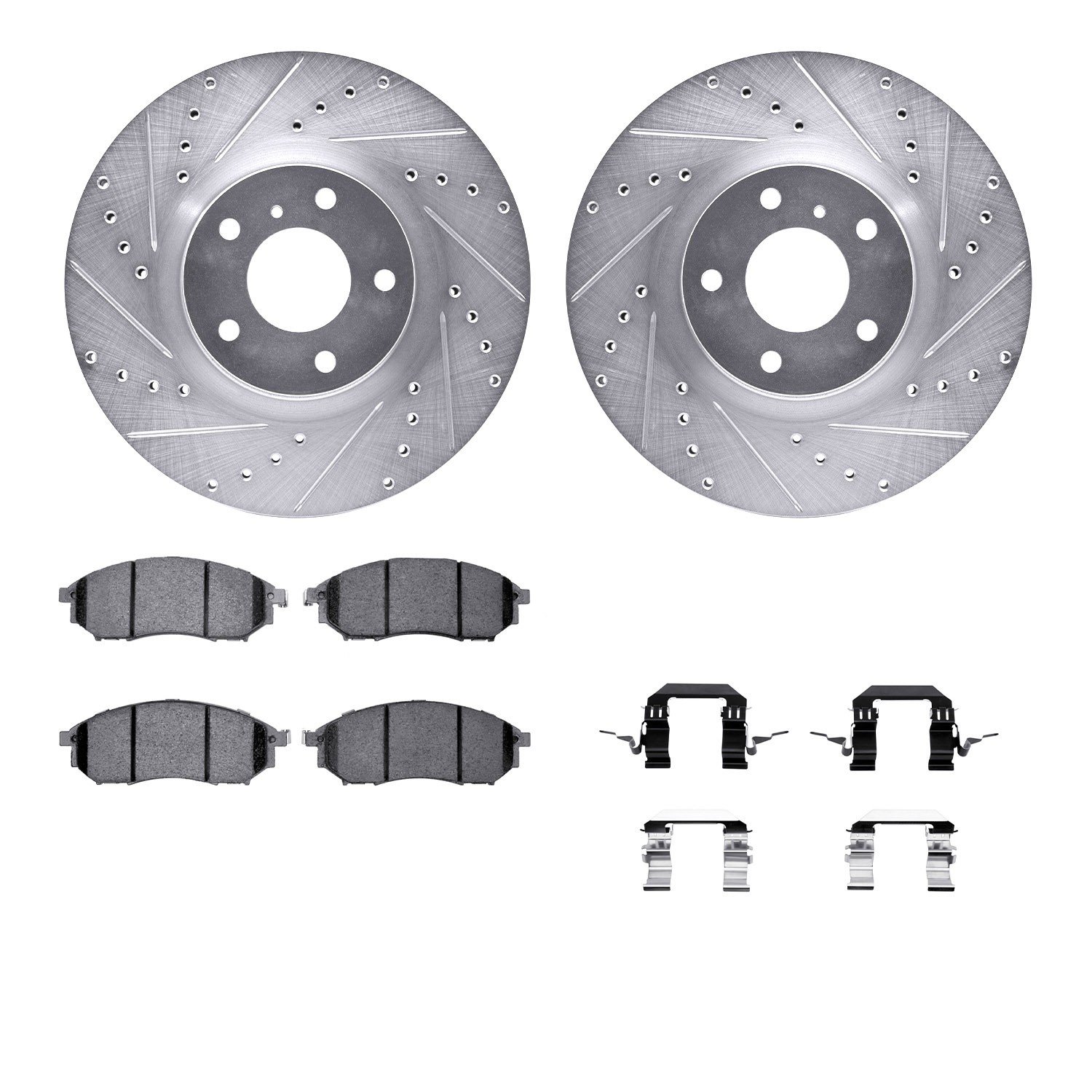 - DFC Rotors-Drilled & Slotted-Silver w/ 5000 Advanced Brake Pads Incl Hdw