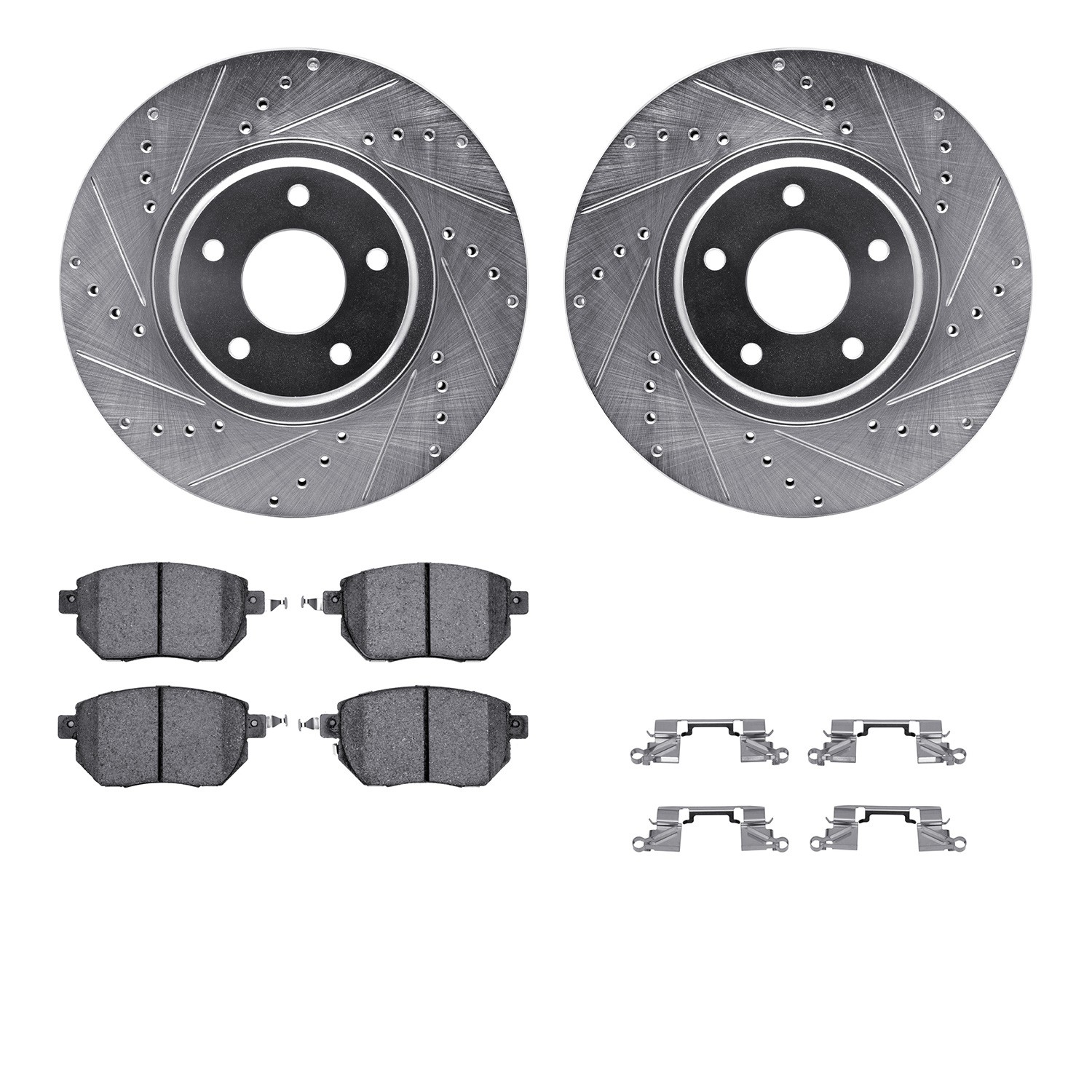 - DFC Brake Rotor - Dimpled & Slotted - Silver w/5000 Brake Pads & HW Kit