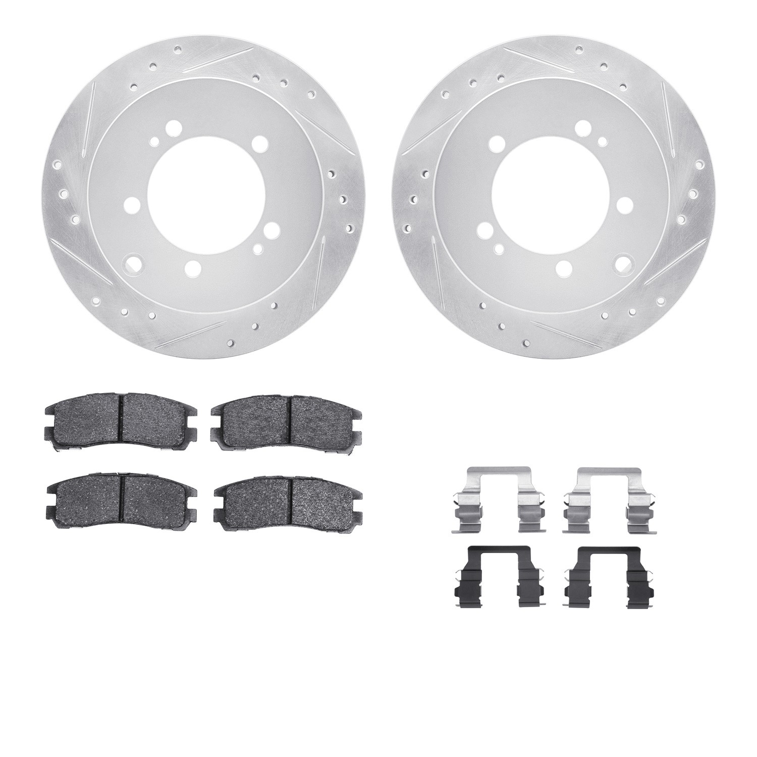 - DFC Rotors-Drilled & Slotted-Silver w/ 5000 Advanced Brake Pads Incl Hdw