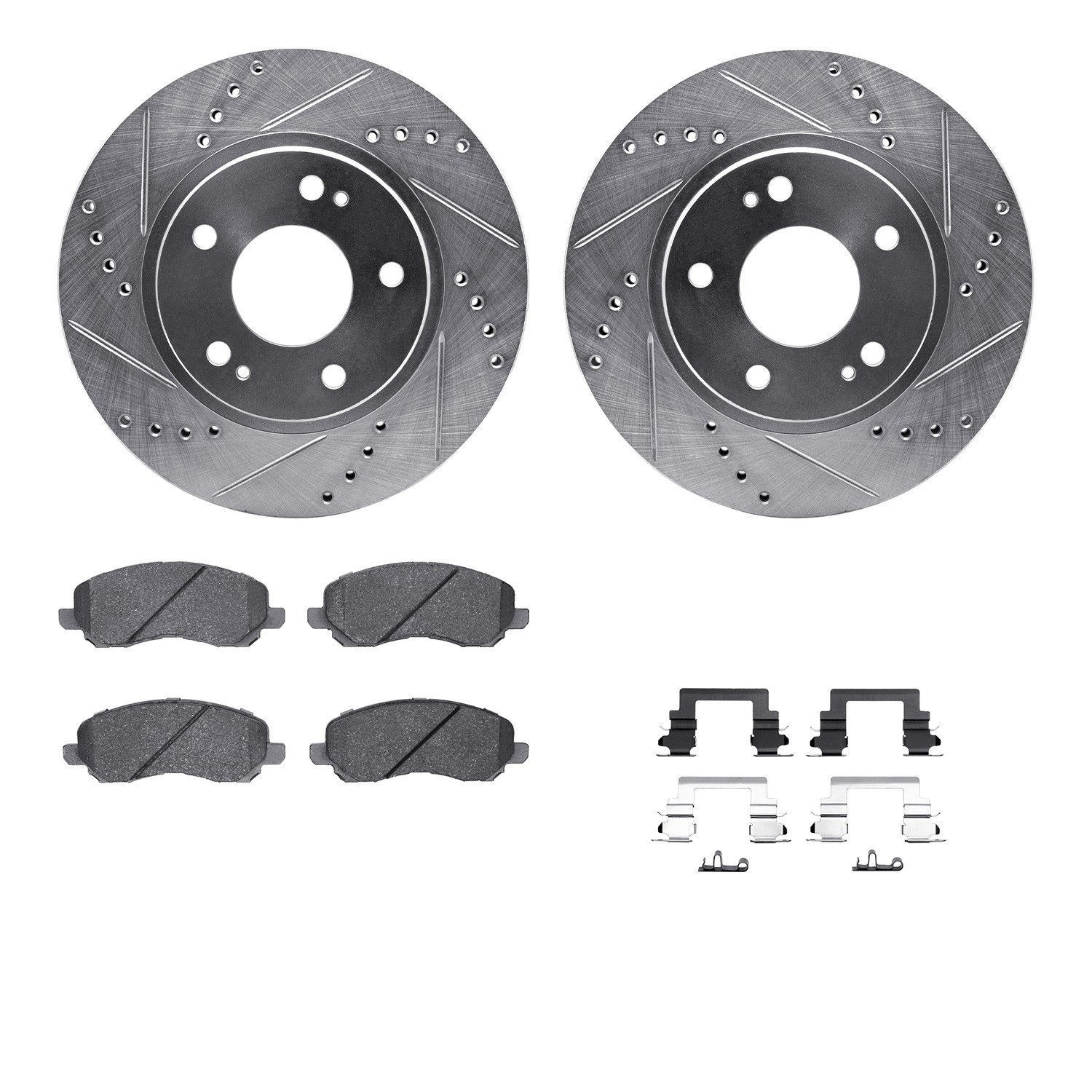 - DFC Brake Rotor - Dimpled & Slotted - Silver w/5000 Brake Pads & HW Kit