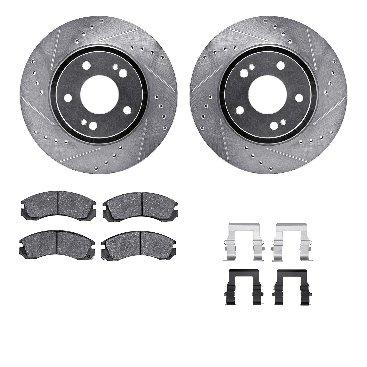 - DFC Rotors-Drilled & Slotted-Silver w/ 5000 Advanced Brake Pads Incl Hdw