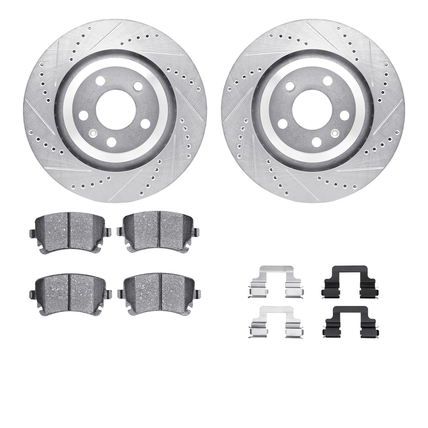 - DFC Rotors-Drilled & Slotted-Silver w/ 5000 Advanced Brake Pads Incl Hdw