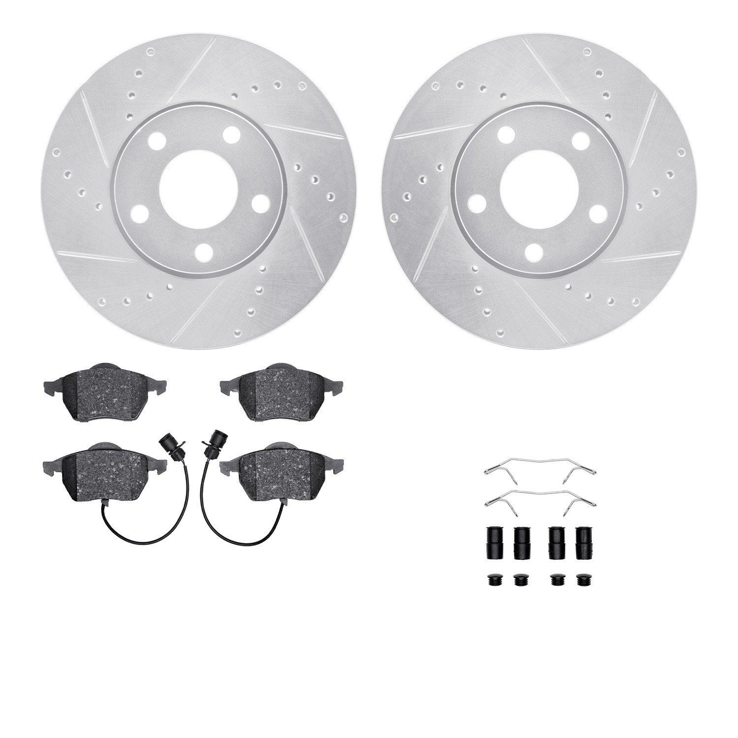 - DFC Rotors-Drilled & Slotted-Silver w/ 5000 Advanced Brake Pads Incl Hdw