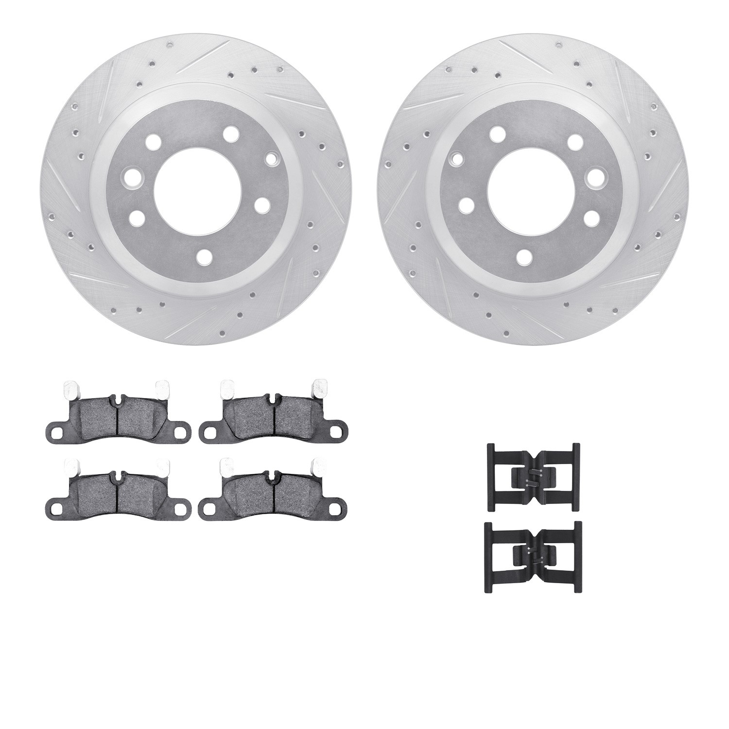 - DFC Brake Rotor - Dimpled & Slotted - Silver w/5000 Brake Pads & HW Kit