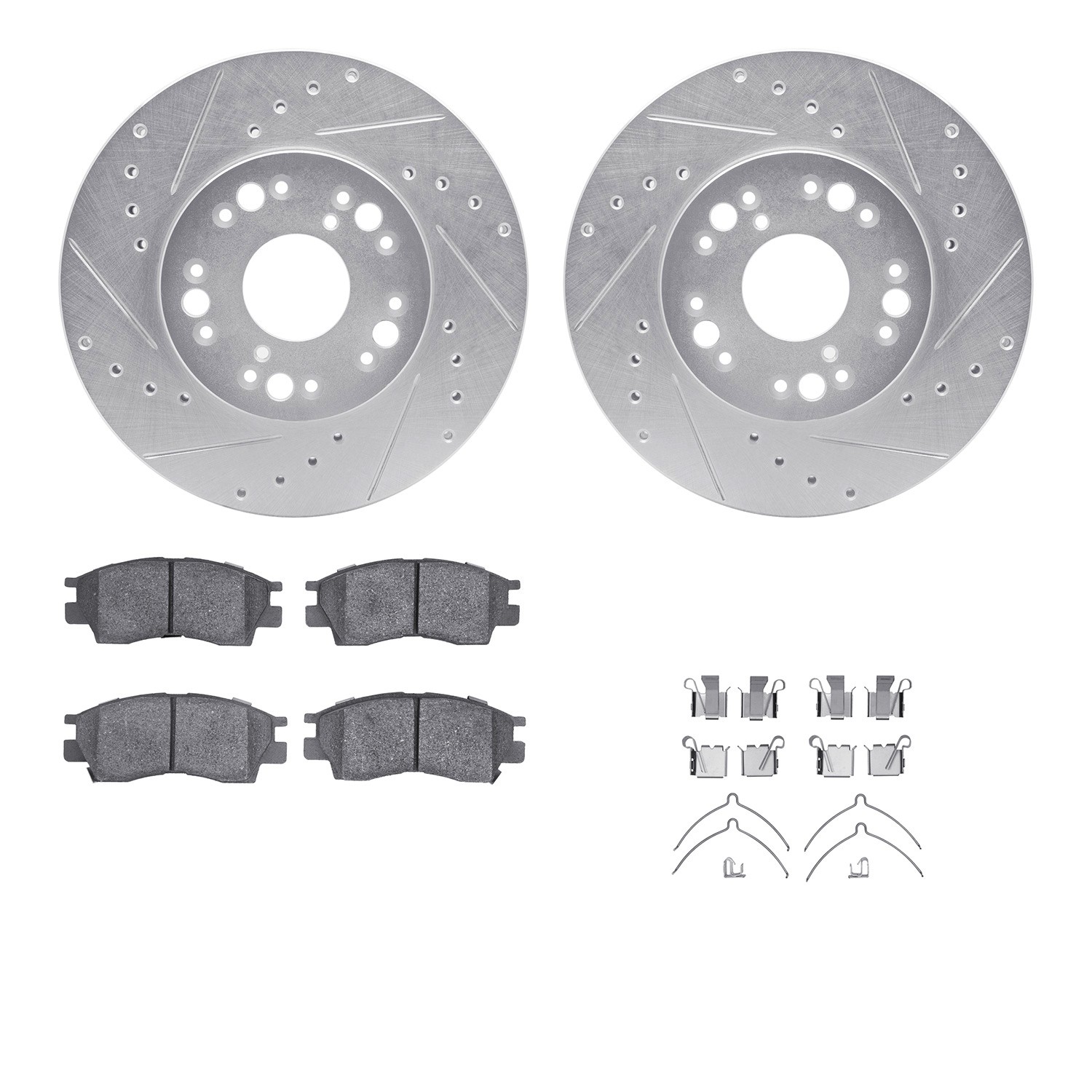 - DFC Rotors-Drilled & Slotted-Silver w/ 5000 Advanced Brake Pads Incl Hdw