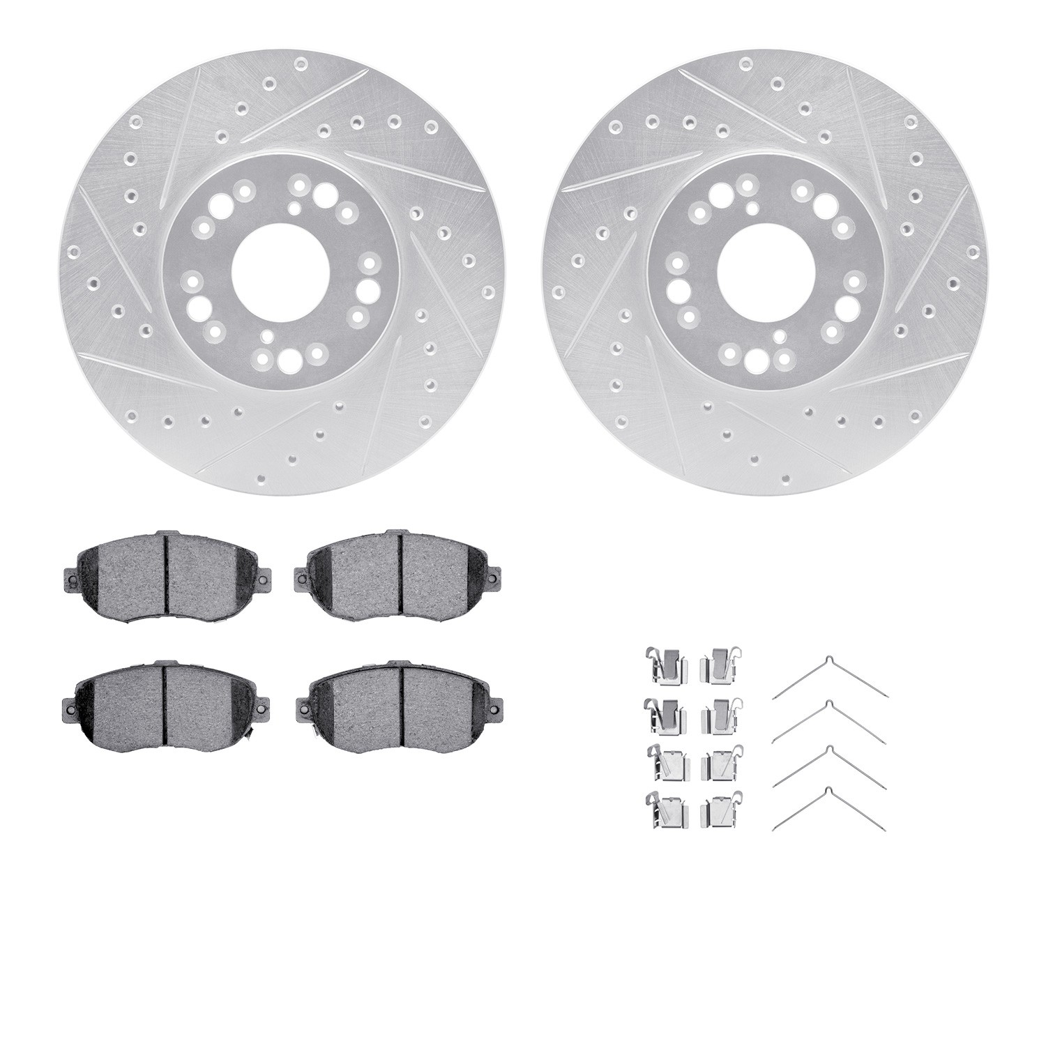 - DFC Rotors-Drilled & Slotted-Silver w/ 5000 Advanced Brake Pads Incl Hdw