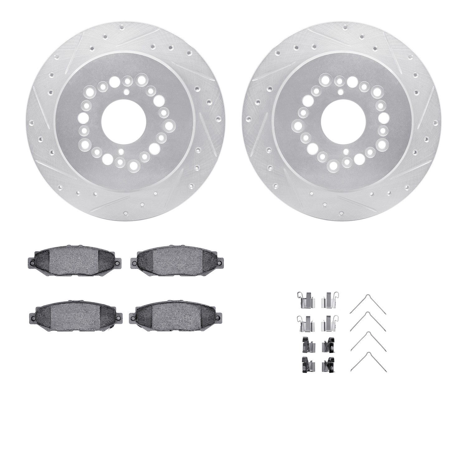 - DFC Rotors-Drilled & Slotted-Silver w/ 5000 Advanced Brake Pads Incl Hdw
