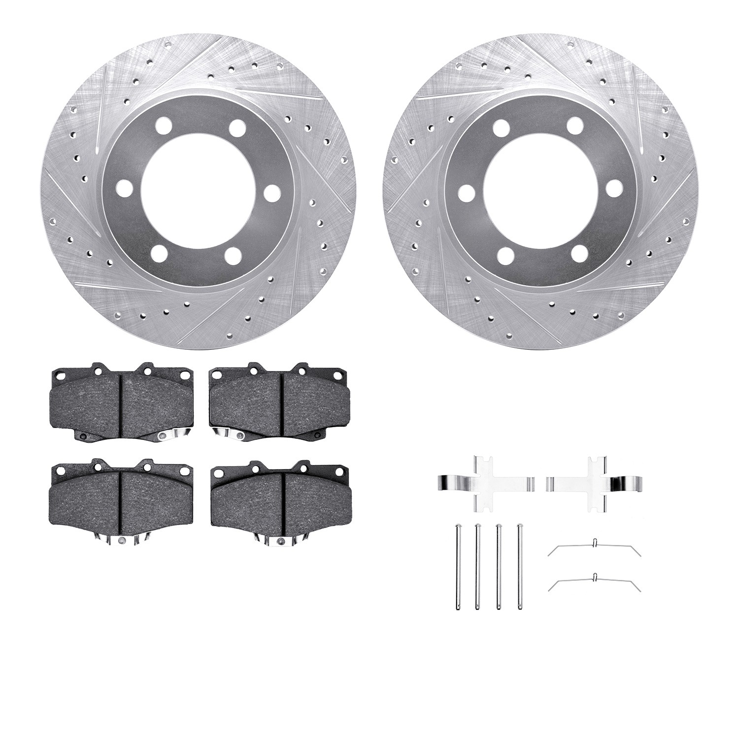 - DFC Brake Rotor - Dimpled & Slotted - Silver w/5000 Brake Pads & HW Kit
