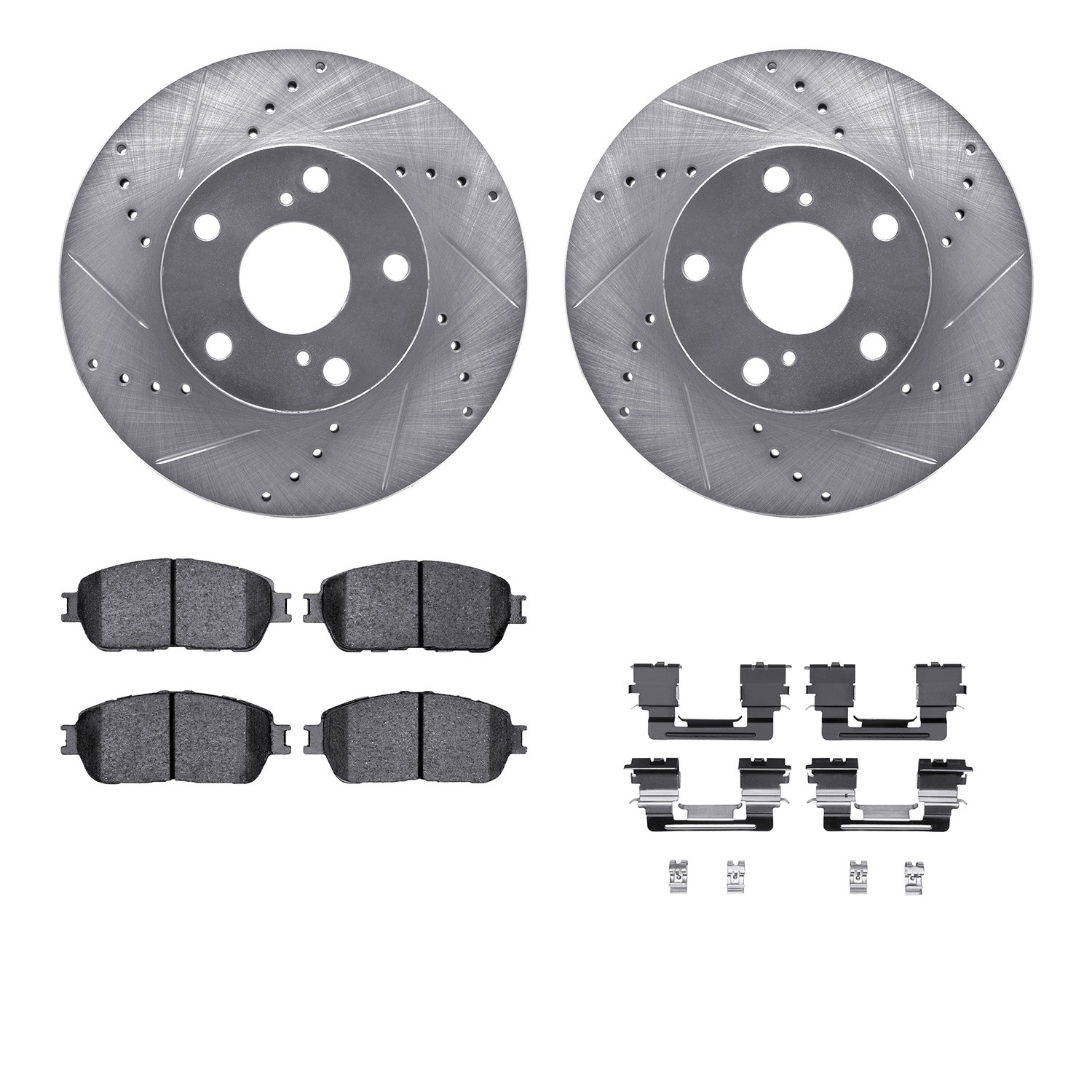 - DFC Brake Rotor - Dimpled & Slotted - Silver w/5000 Brake Pads & HW Kit