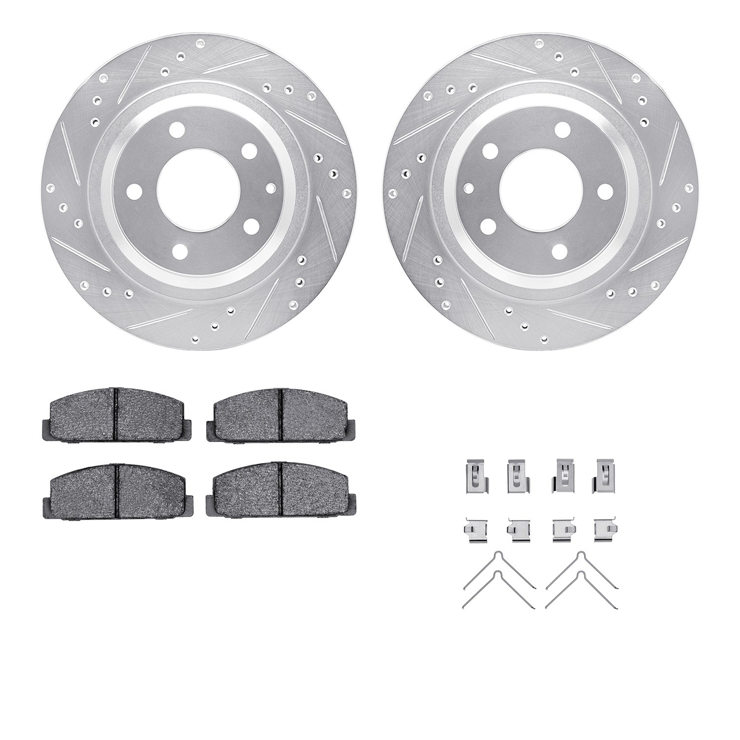 - DFC Rotors-Drilled & Slotted-Silver w/ 5000 Advanced Brake Pads Incl Hdw