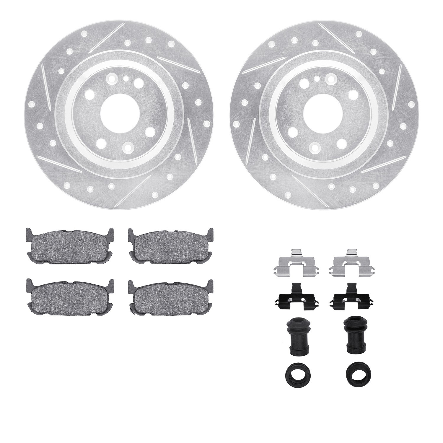 - DFC Rotors-Drilled & Slotted-Silver w/ 5000 Advanced Brake Pads Incl Hdw