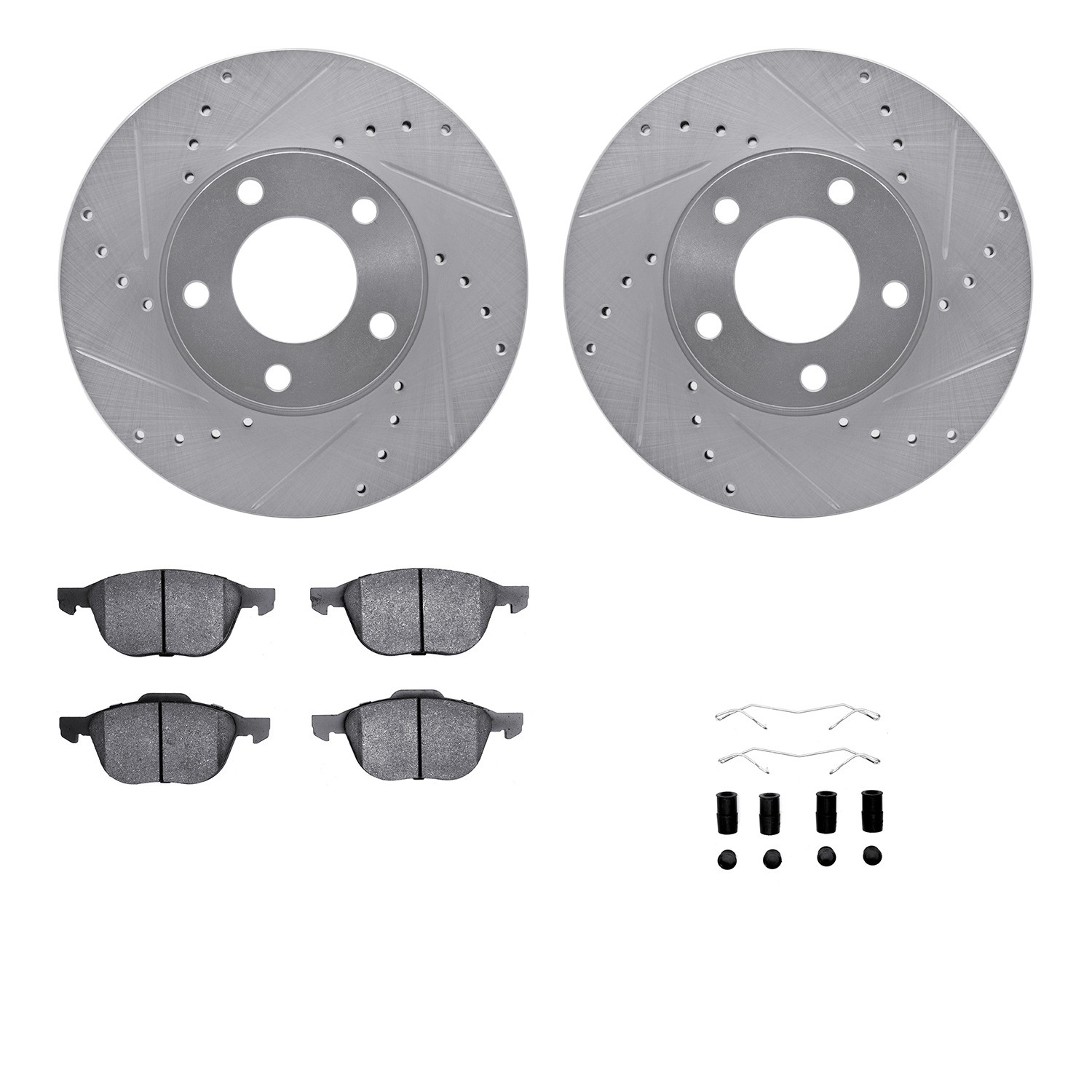 - DFC Rotors-Drilled & Slotted-Silver w/ 5000 Advanced Brake Pads Incl Hdw