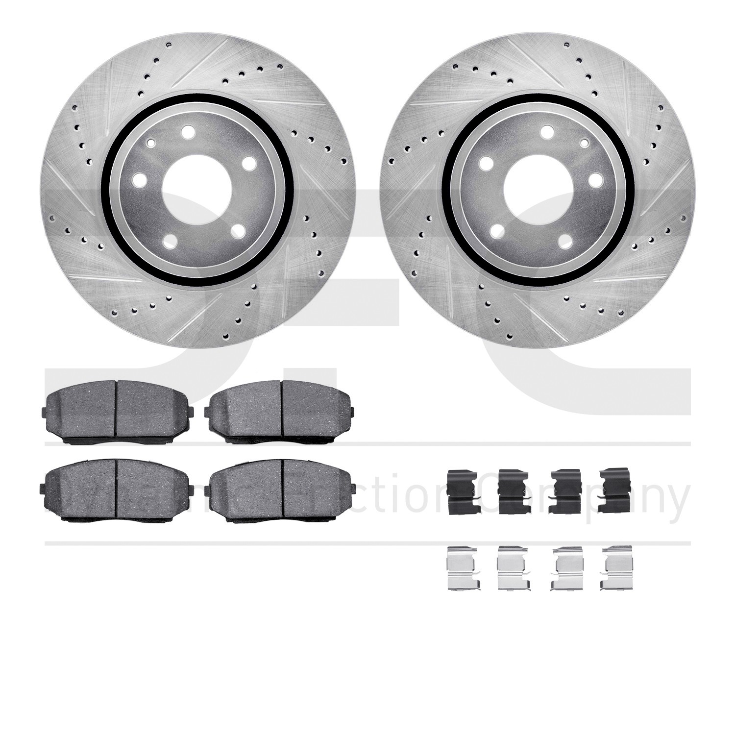- DFC Rotors-Drilled & Slotted-Silver w/ 5000 Advanced Brake Pads Incl Hdw