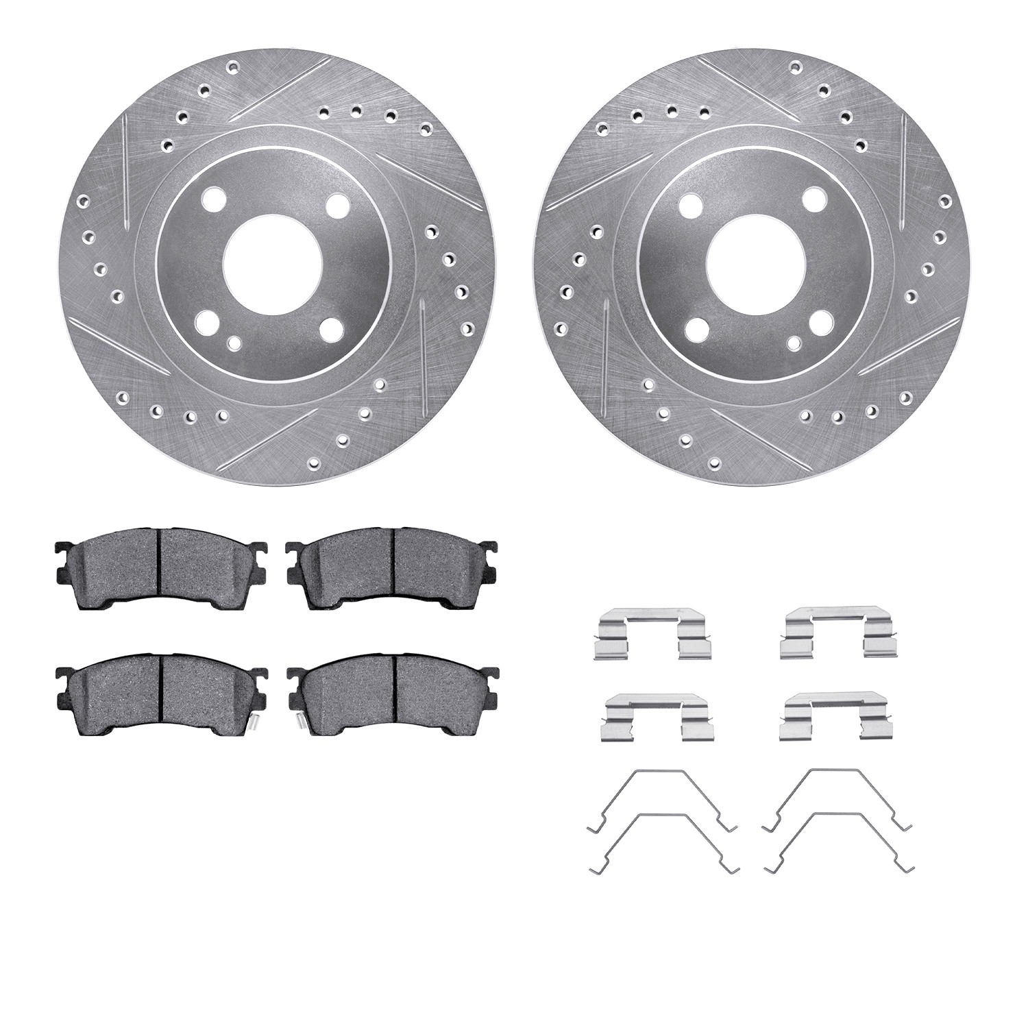 - DFC Rotors-Drilled & Slotted-Silver w/ 5000 Advanced Brake Pads Incl Hdw