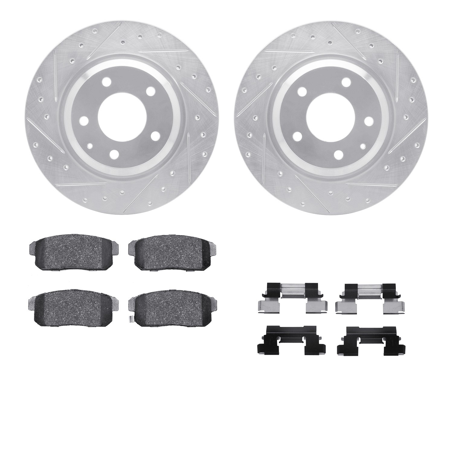- DFC Rotors-Drilled & Slotted-Silver w/ 5000 Advanced Brake Pads Incl Hdw