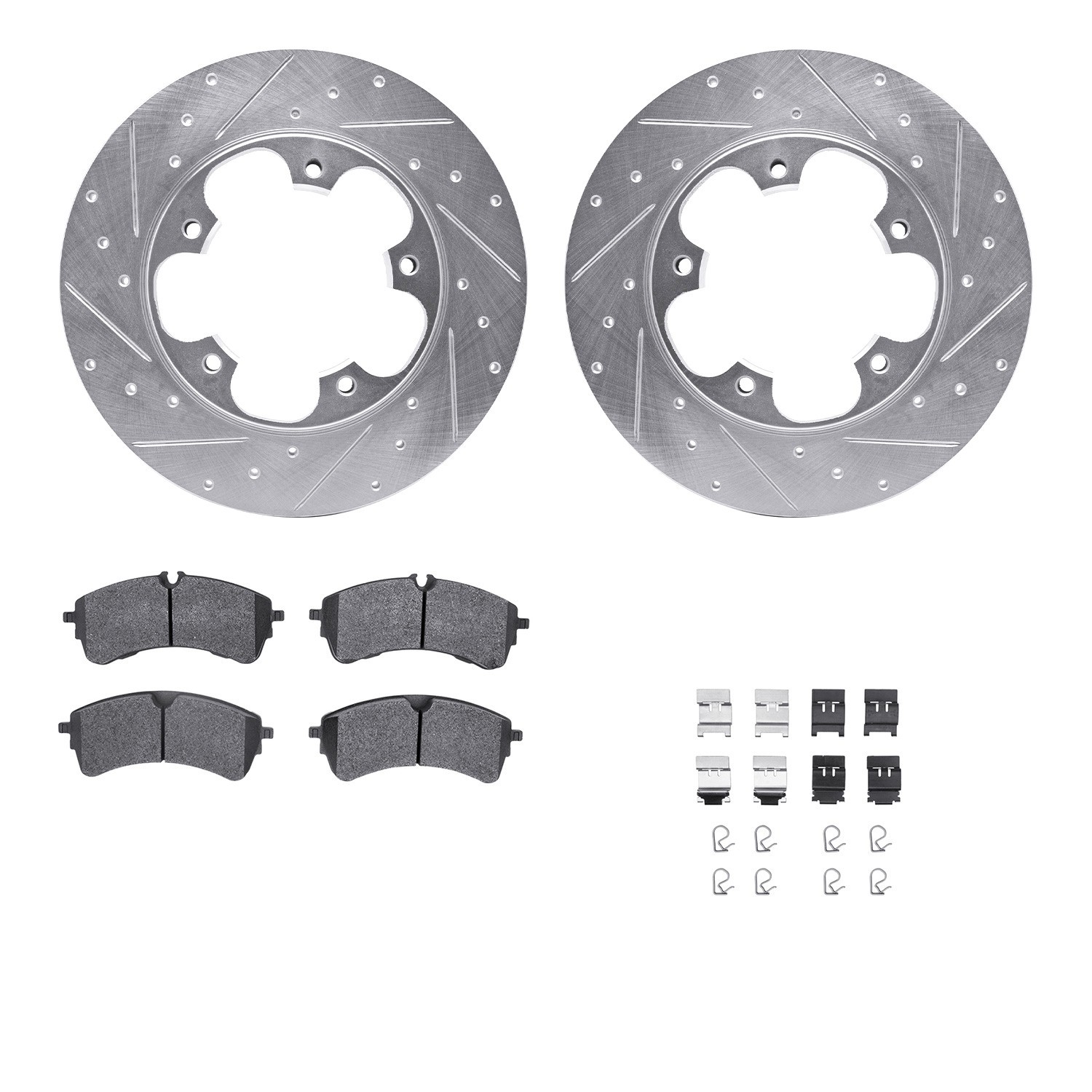 - DFC Rotors-Drilled & Slotted-Silver w/ 5000 Advanced Brake Pads Incl Hdw