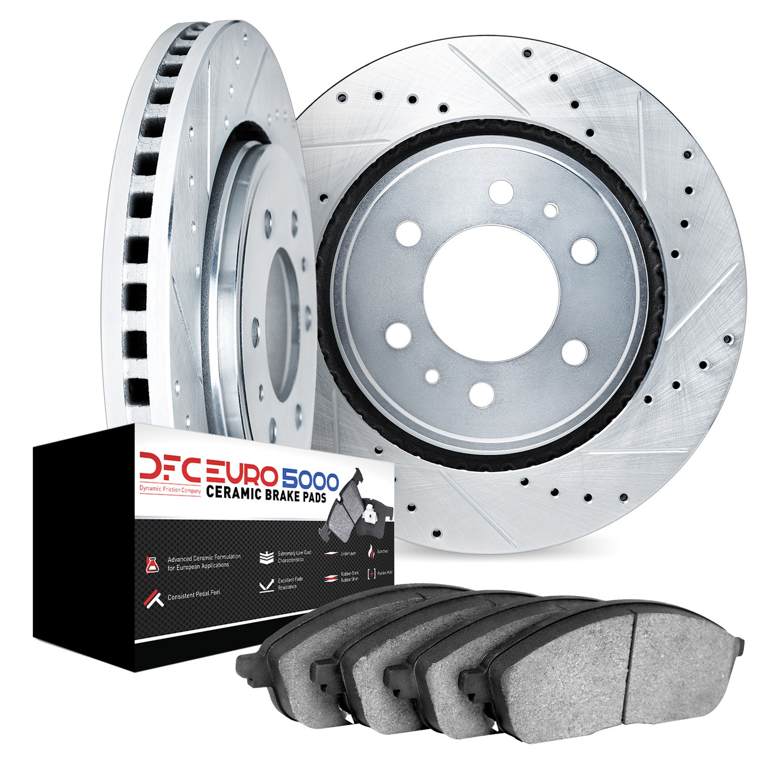 - DFC Rotors-Drilled and Slotted-Silver with EURO 5000 Ceramic Brake Pads
