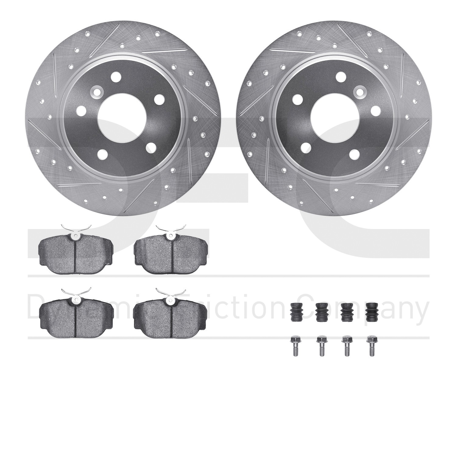 - DFC Rotors-Drilled & Slotted-Silver w/ EURO 5000 Ceramic Brake Pads Incl Hdw