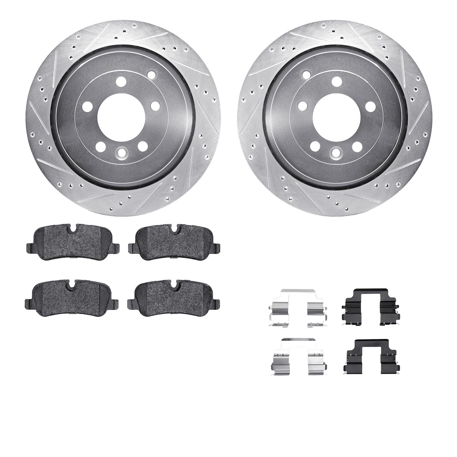 - DFC Rotors-Drilled & Slotted-Silver w/ EURO 5000 Ceramic Brake Pads Incl Hdw