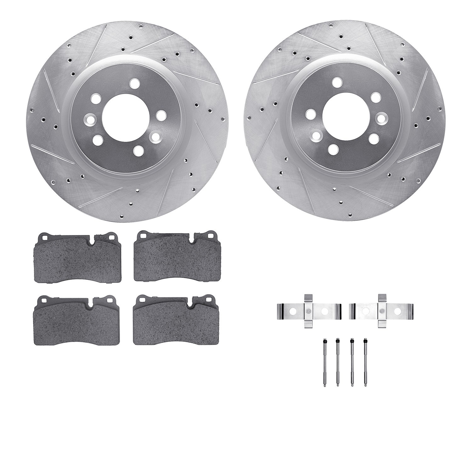 - DFC Rotors-Drilled & Slotted-Silver w/ EURO 5000 Ceramic Brake Pads Incl Hdw