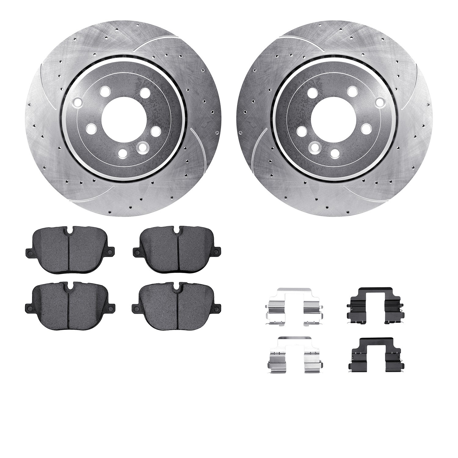 - DFC Rotors-Drilled & Slotted-Silver w/ EURO 5000 Ceramic Brake Pads Incl Hdw