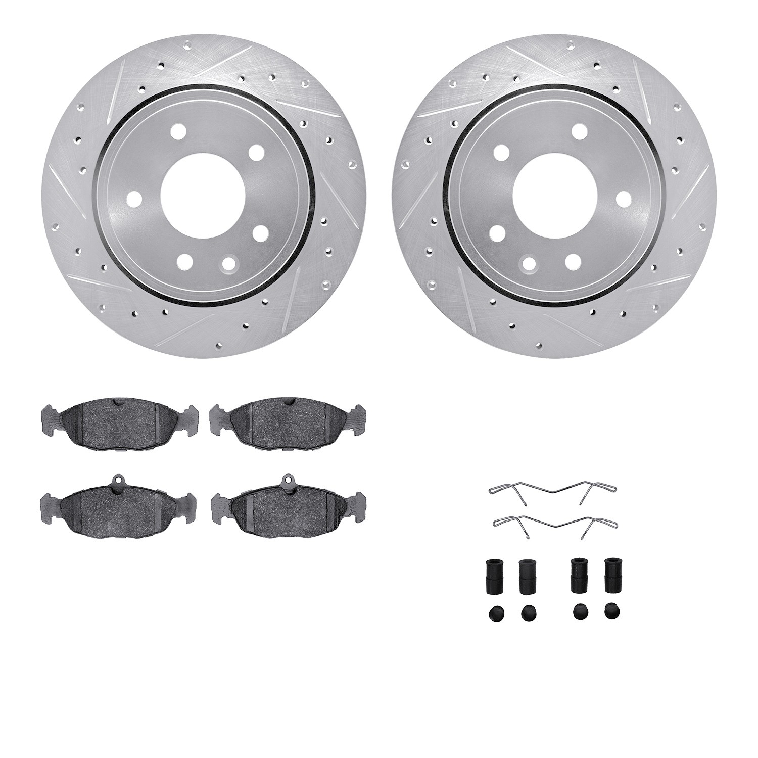 - DFC Rotors-Drilled & Slotted-Silver w/ EURO 5000 Ceramic Brake Pads Incl Hdw