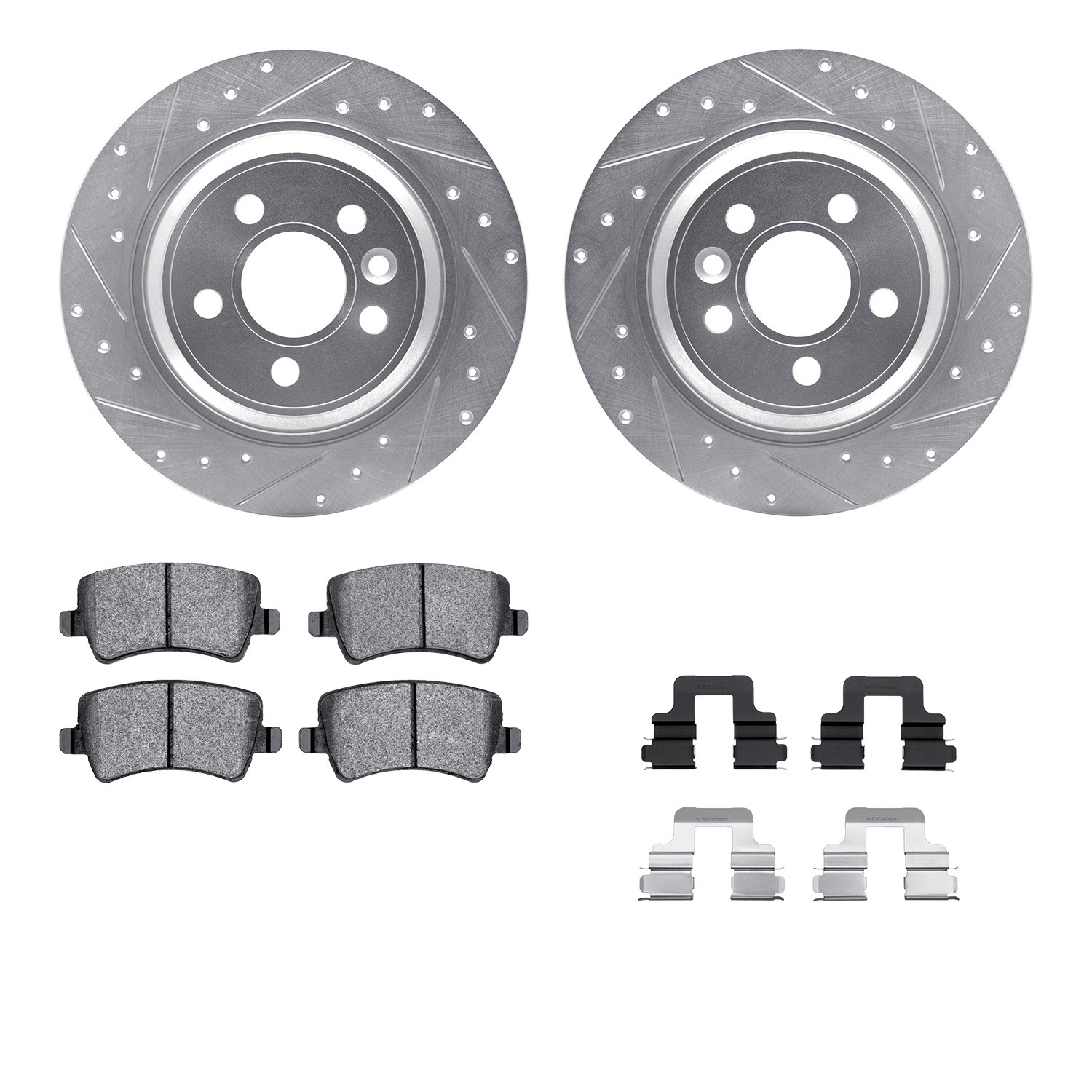 - DFC Rotors-Drilled & Slotted-Silver w/ EURO 5000 Ceramic Brake Pads Incl Hdw