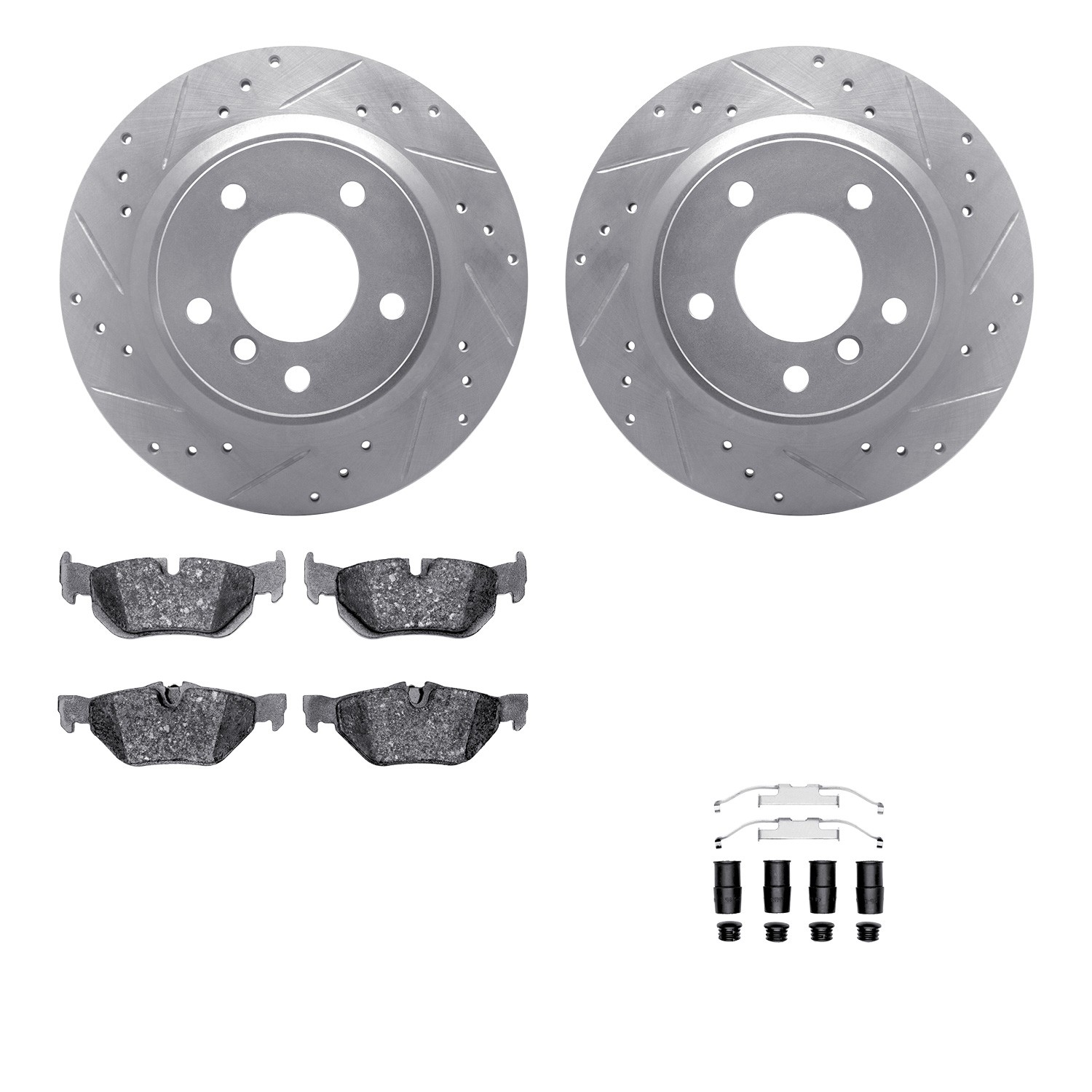 - DFC Rotors-Drilled & Slotted-Silver w/ EURO 5000 Ceramic Brake Pads Incl Hdw
