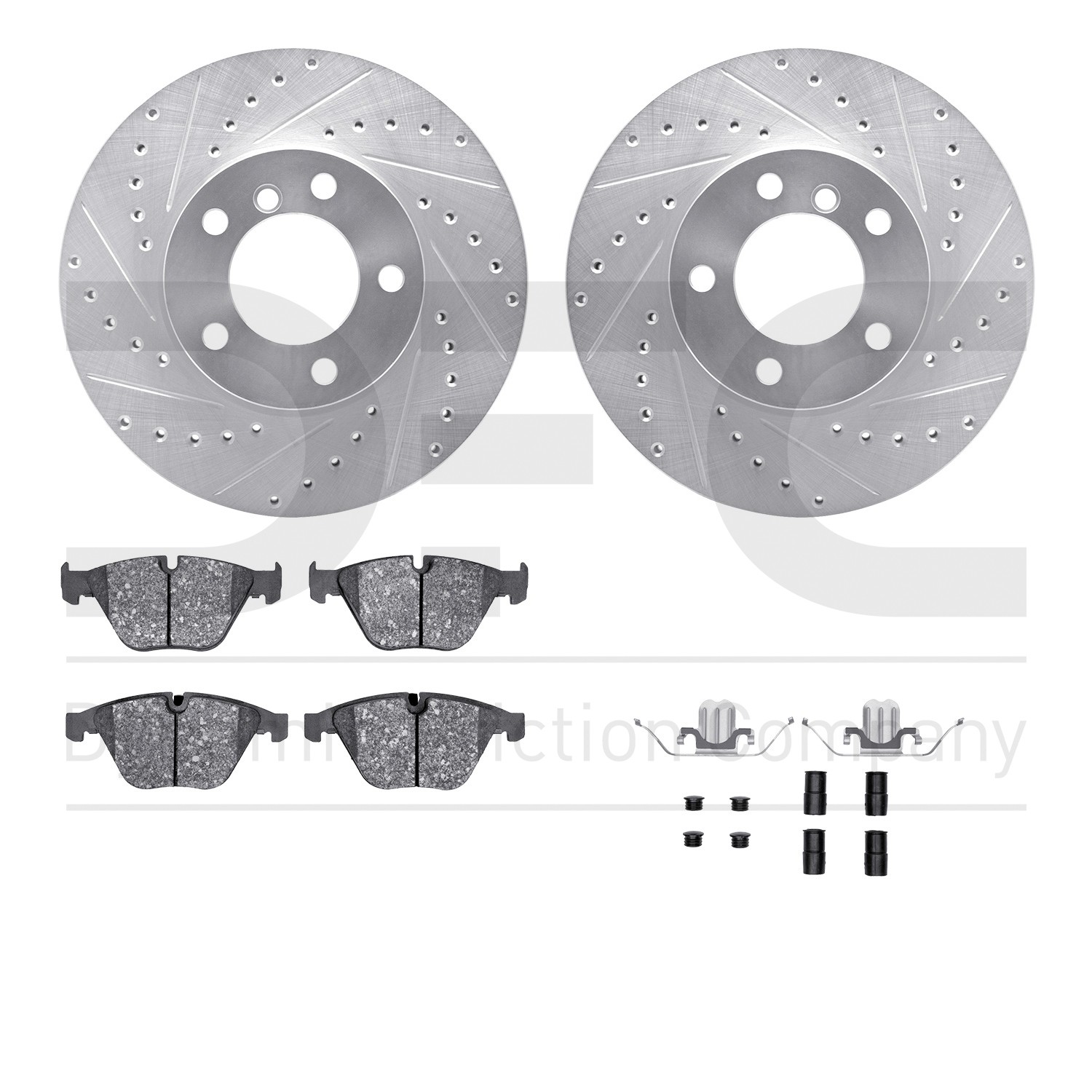 - DFC Rotors-Drilled & Slotted-Silver w/ EURO 5000 Ceramic Brake Pads Incl Hdw