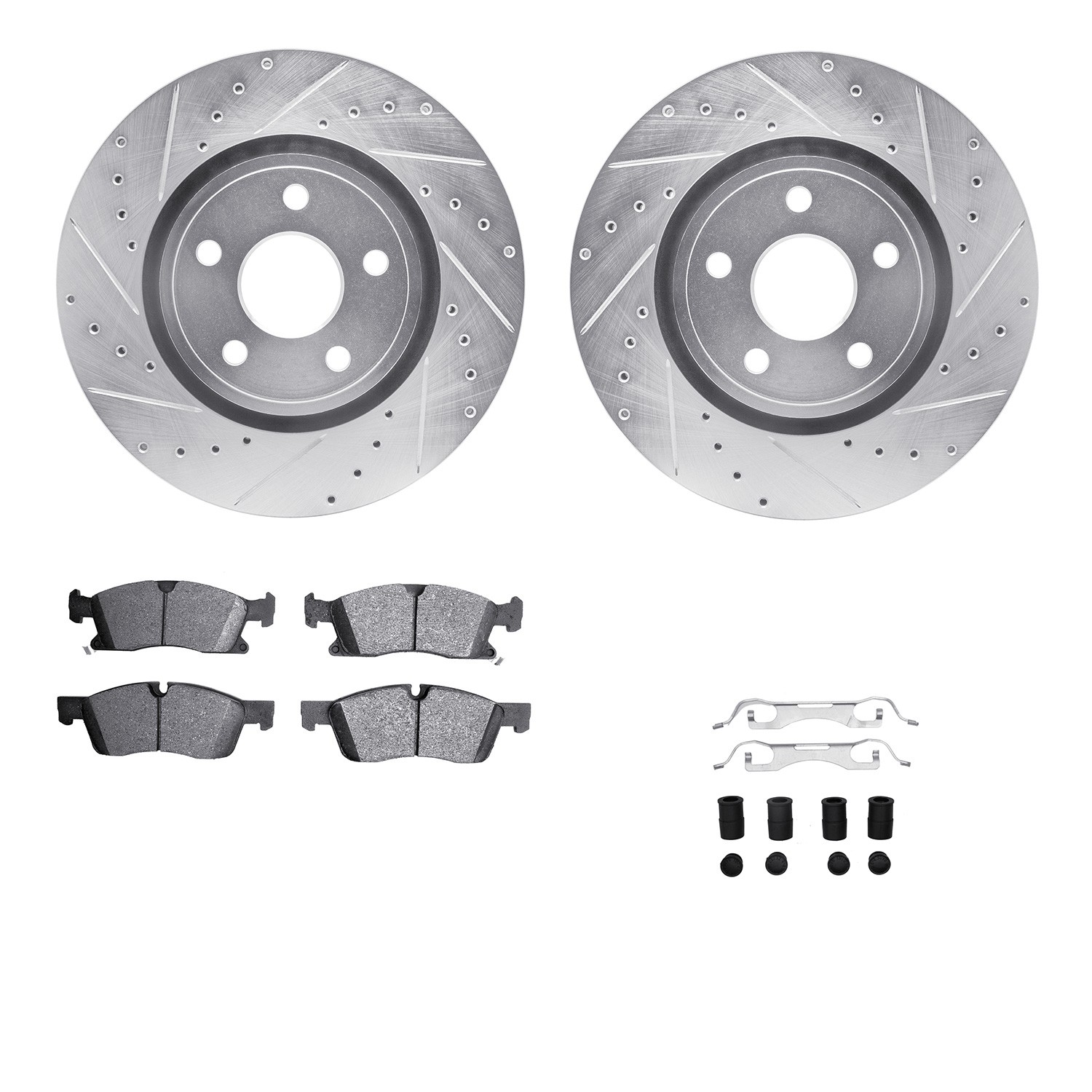 - DFC Rotors-Drilled & Slotted-Silver w/ EURO 5000 Ceramic Brake Pads Incl Hdw