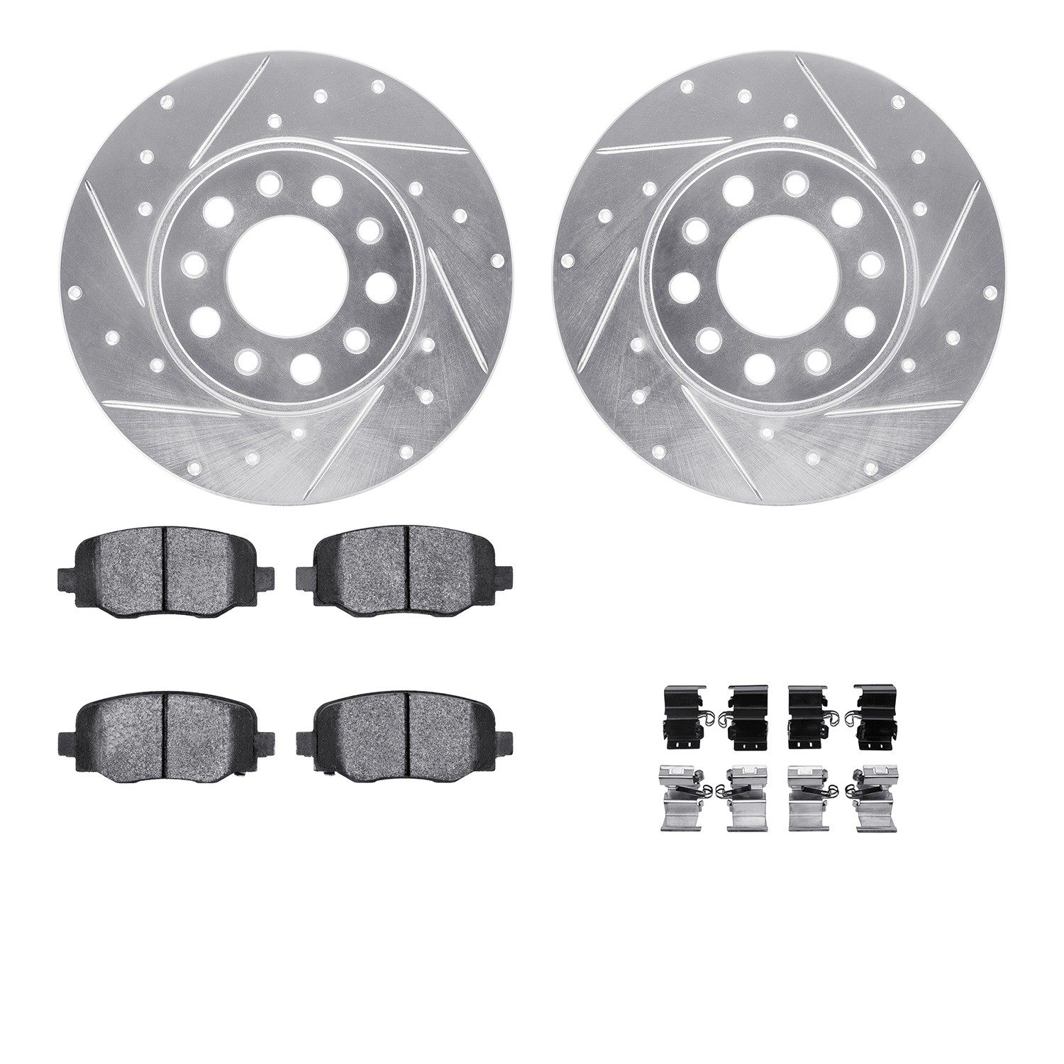 - DFC Rotors-Drilled & Slotted-Silver w/ EURO 5000 Ceramic Brake Pads Incl Hdw