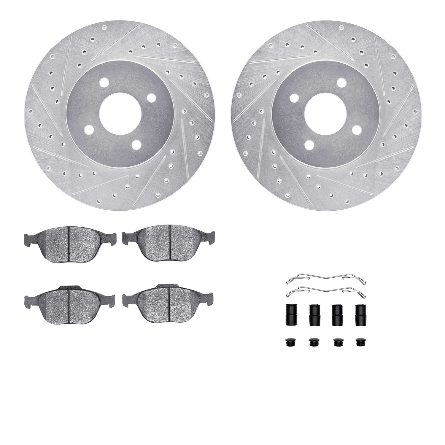 - DFC Rotors-Drilled & Slotted-Silver w/ EURO 5000 Ceramic Brake Pads Incl Hdw