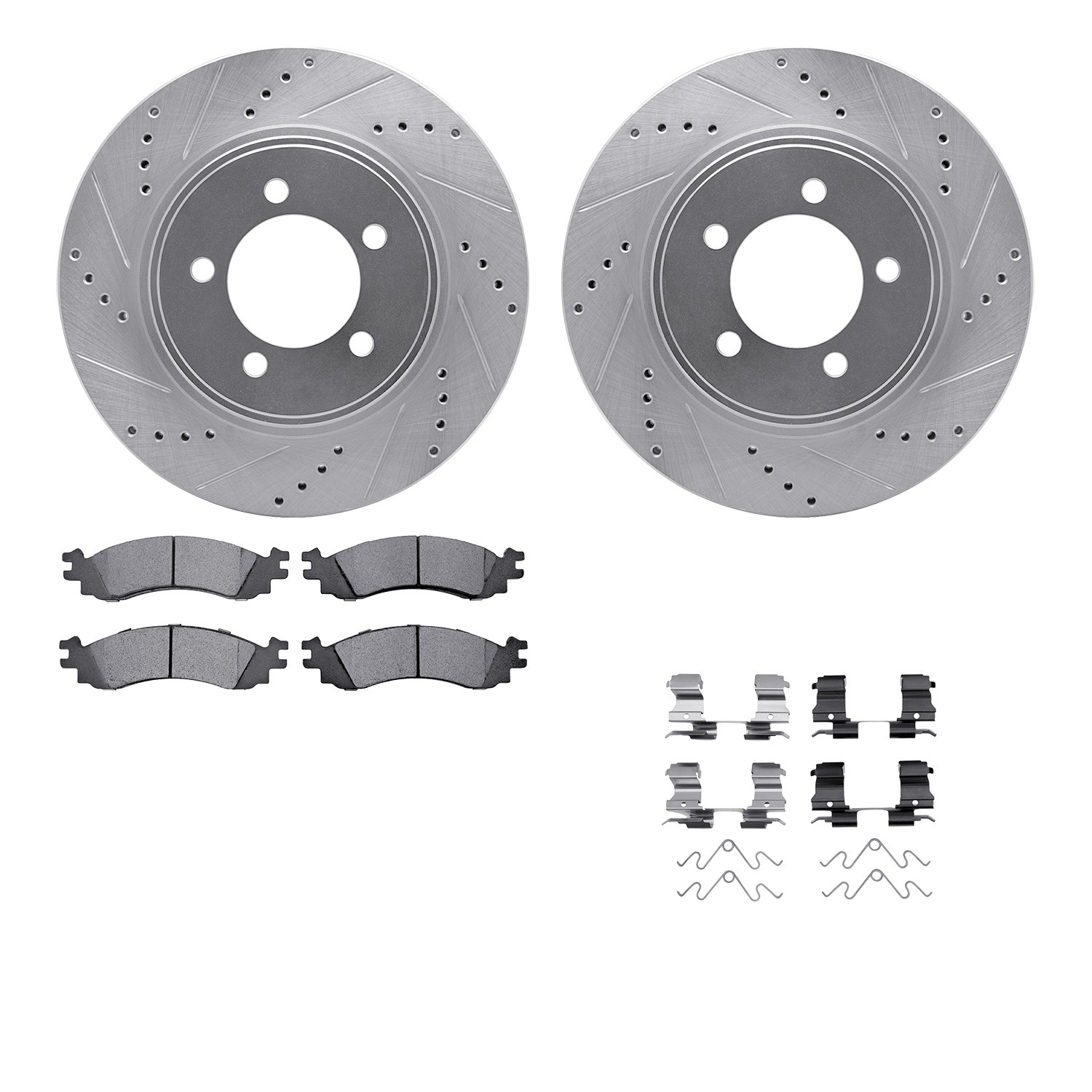 - DFC Rotors-Drilled & Slotted-Silver w/ EURO 5000 Ceramic Brake Pads Incl Hdw