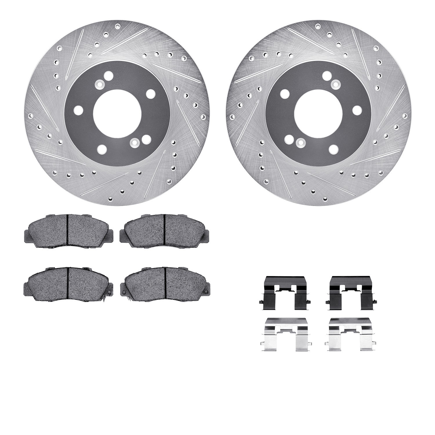 - DFC Rotors-Drilled & Slotted-Silver w/ EURO 5000 Ceramic Brake Pads Incl Hdw