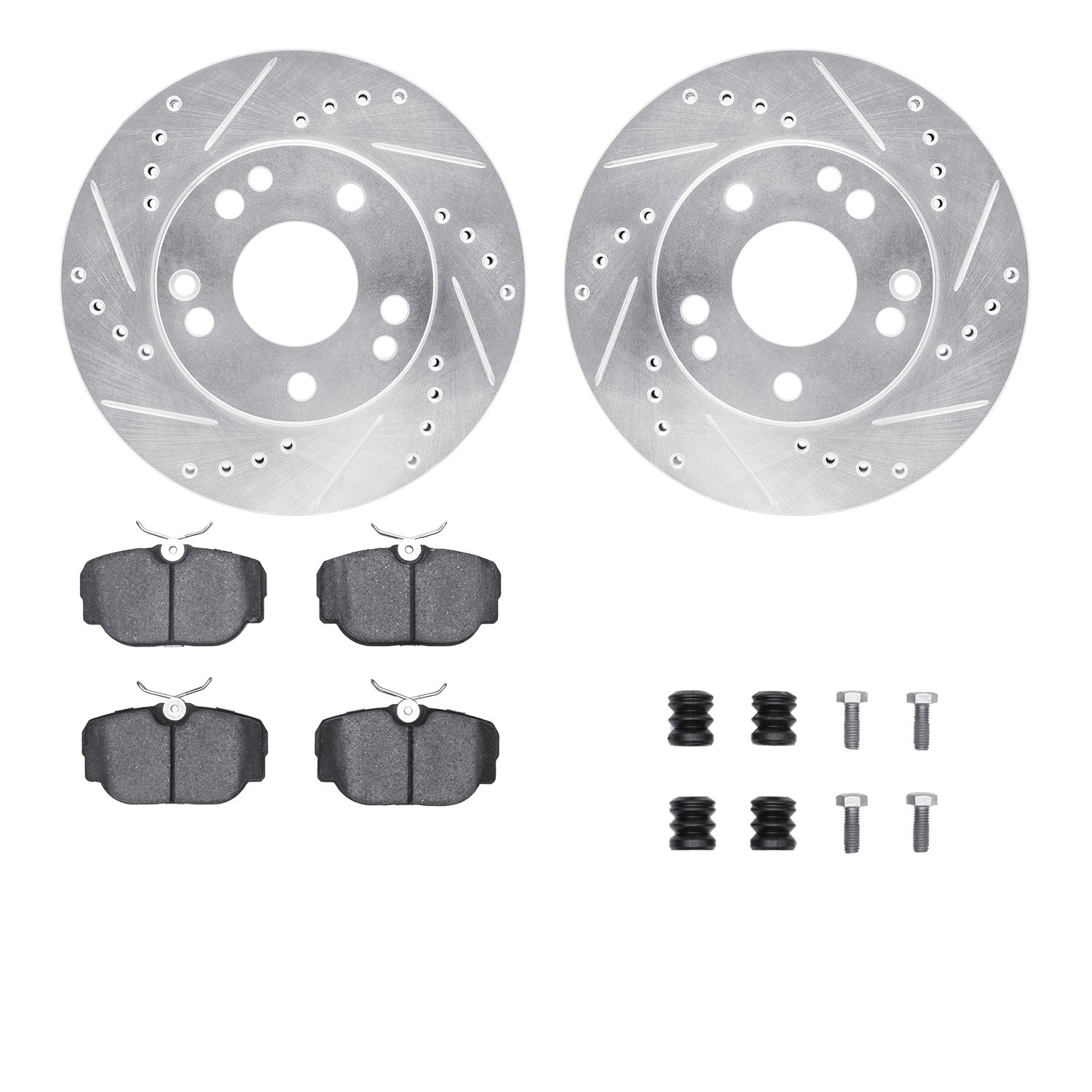 - DFC Rotors-Drilled & Slotted-Silver w/ EURO 5000 Ceramic Brake Pads Incl Hdw