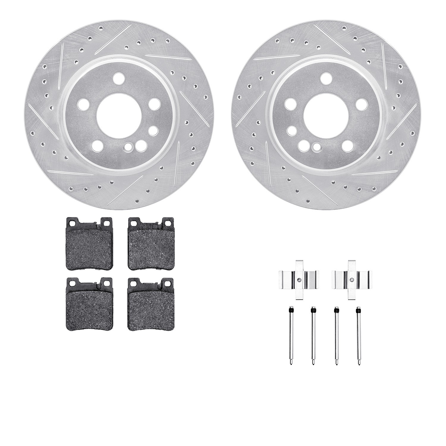 - DFC Rotors-Drilled & Slotted-Silver w/ EURO 5000 Ceramic Brake Pads Incl Hdw