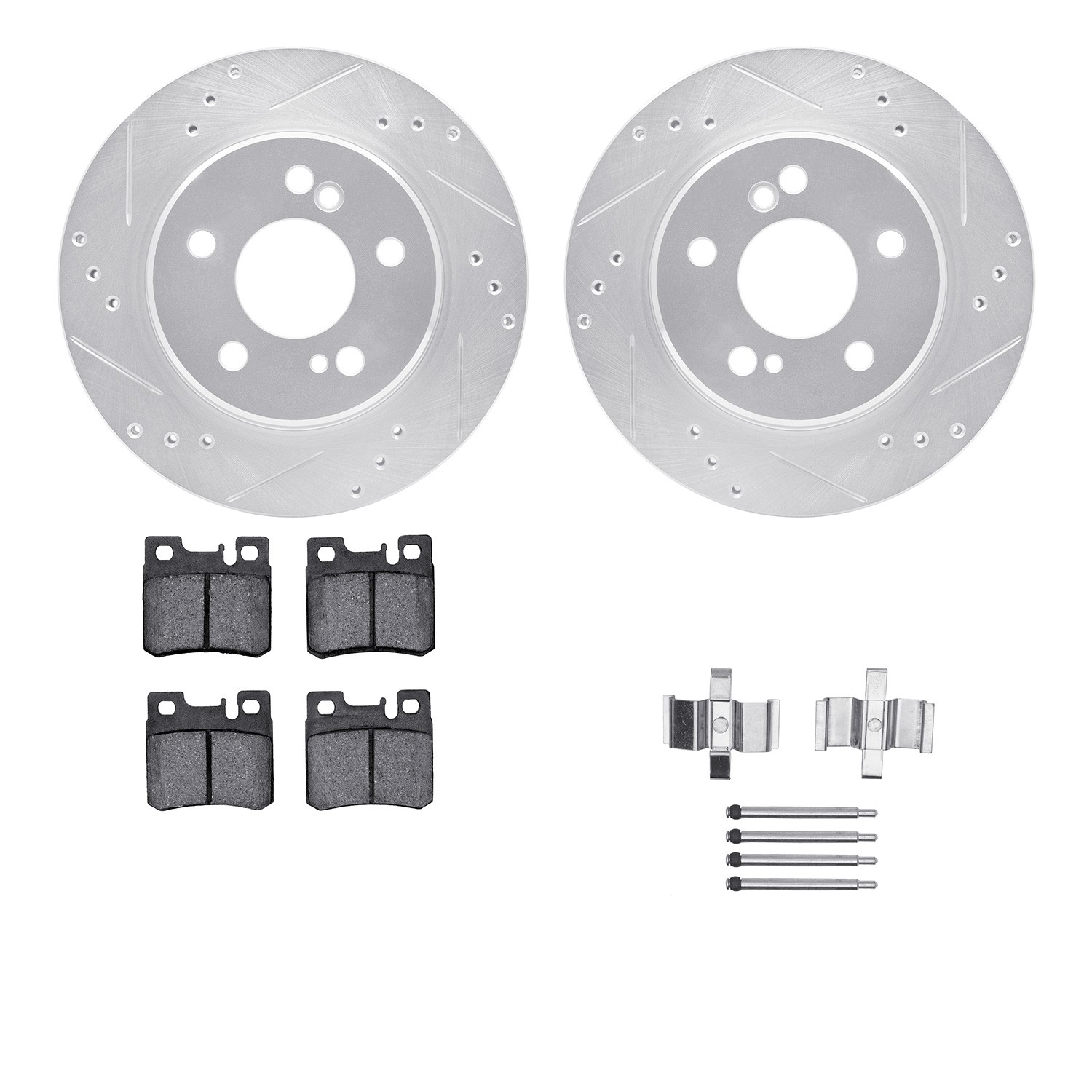 - DFC Rotors-Drilled & Slotted-Silver w/ EURO 5000 Ceramic Brake Pads Incl Hdw