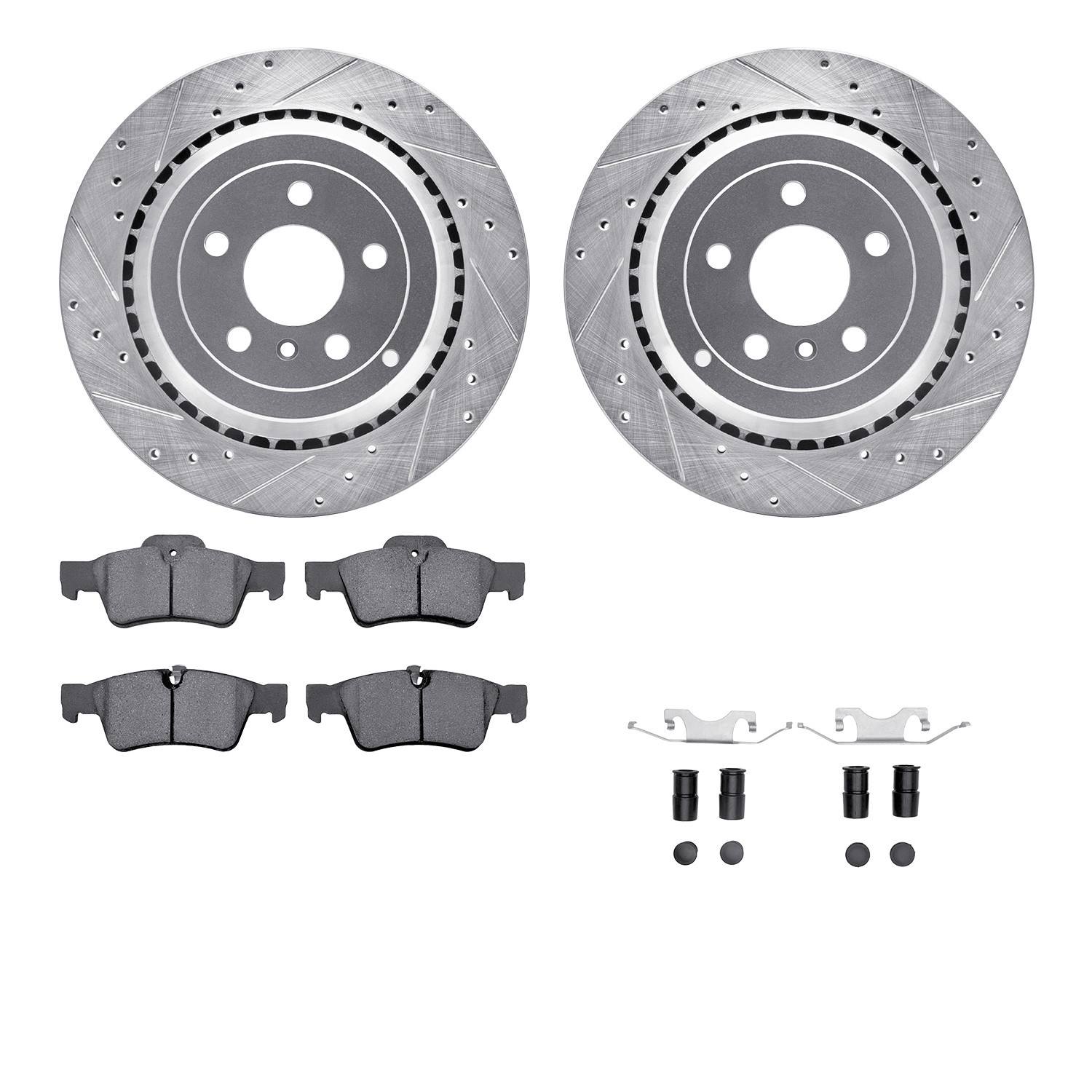 - DFC Rotors-Drilled & Slotted-Silver w/ EURO 5000 Ceramic Brake Pads Incl Hdw