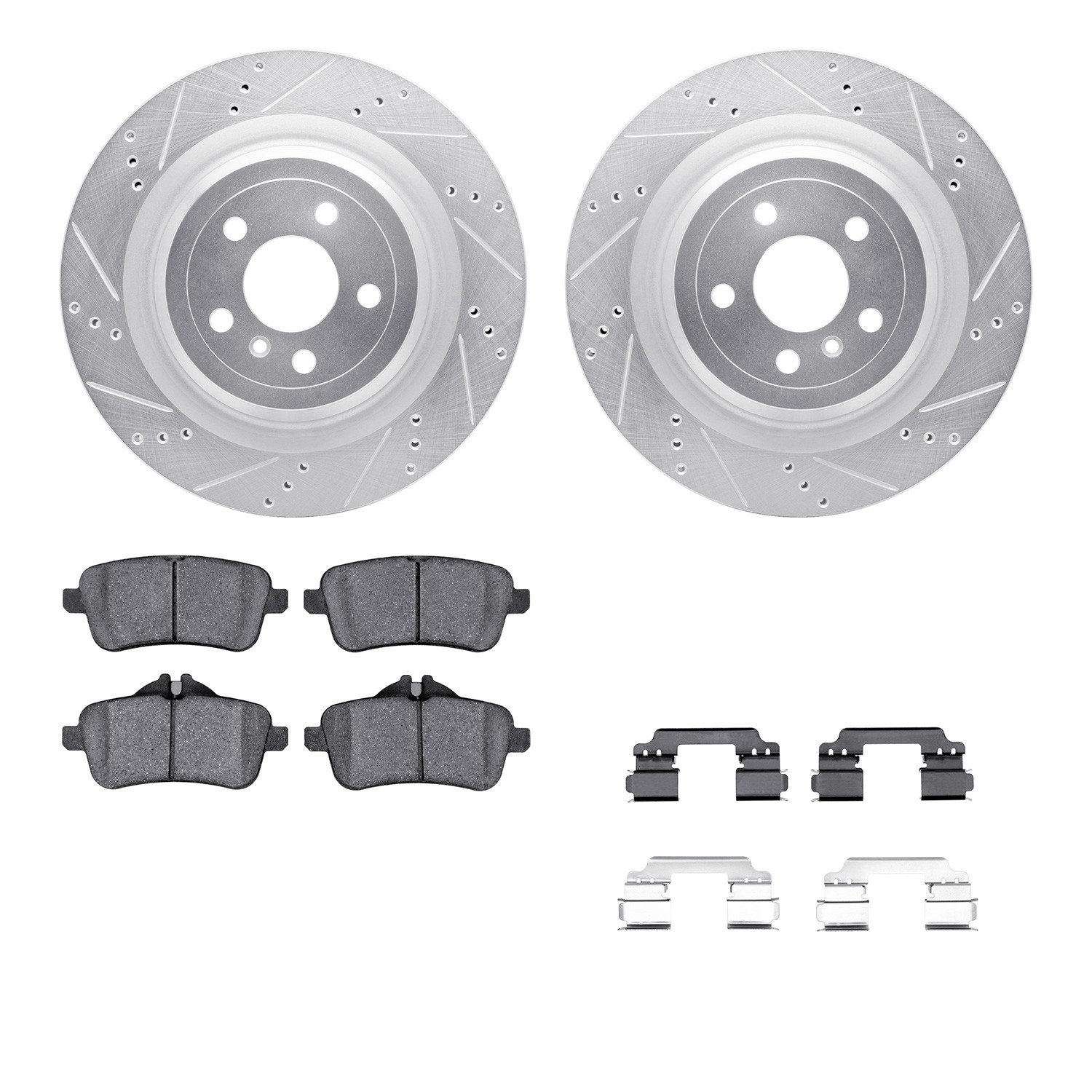 - DFC Rotors-Drilled & Slotted-Silver w/ EURO 5000 Ceramic Brake Pads Incl Hdw