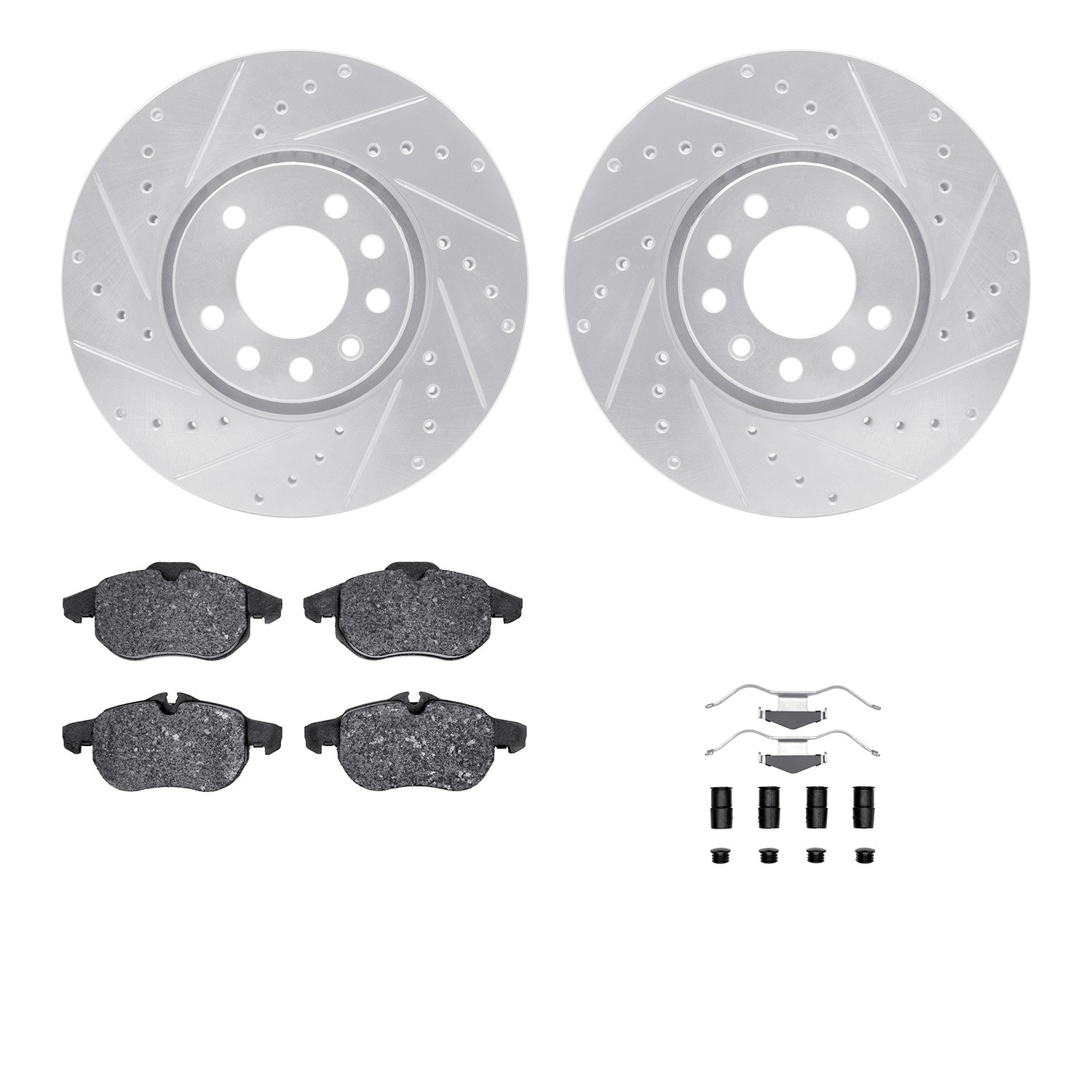 - DFC Rotors-Drilled & Slotted-Silver w/ EURO 5000 Ceramic Brake Pads Incl Hdw