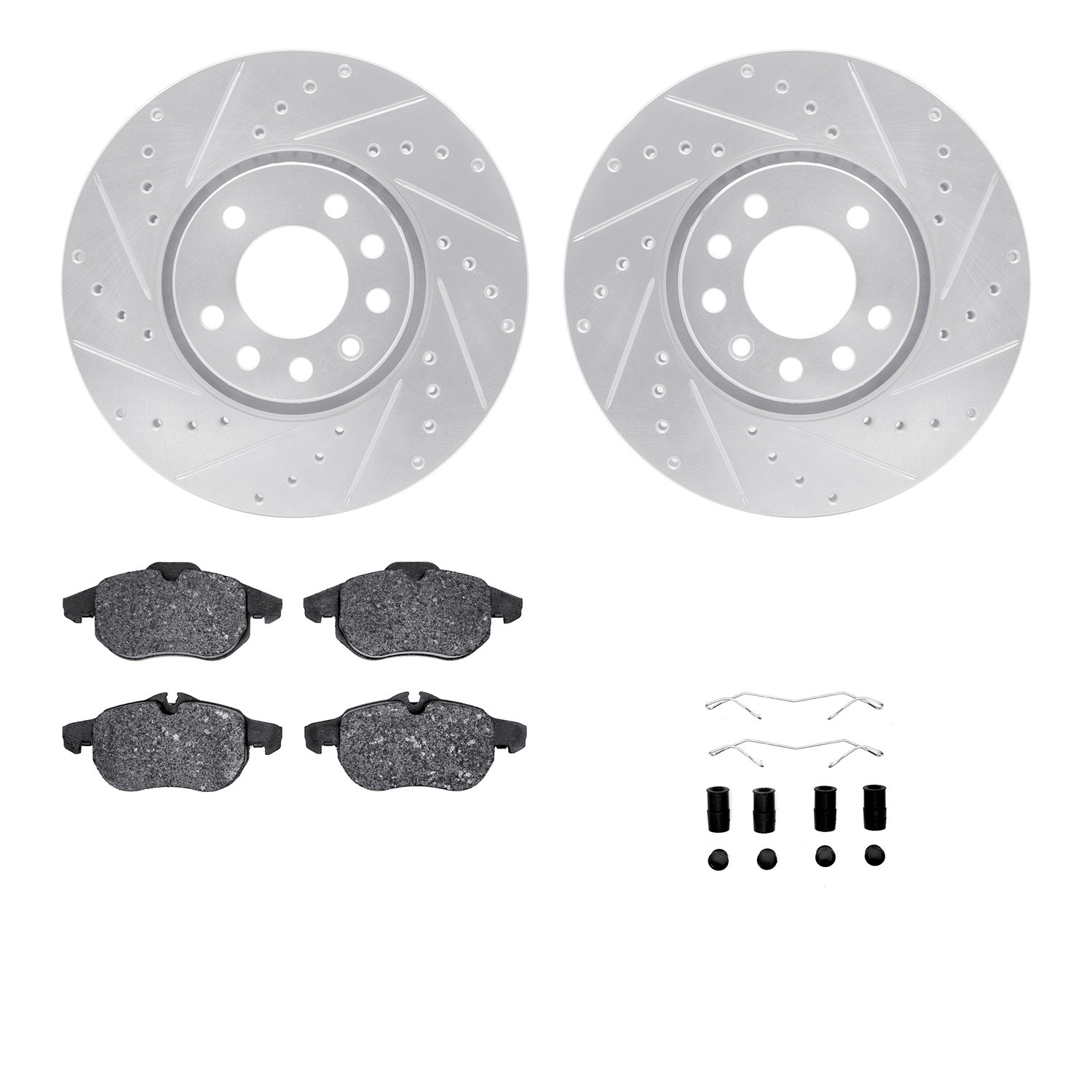 - DFC Rotors-Drilled & Slotted-Silver w/ EURO 5000 Ceramic Brake Pads Incl Hdw