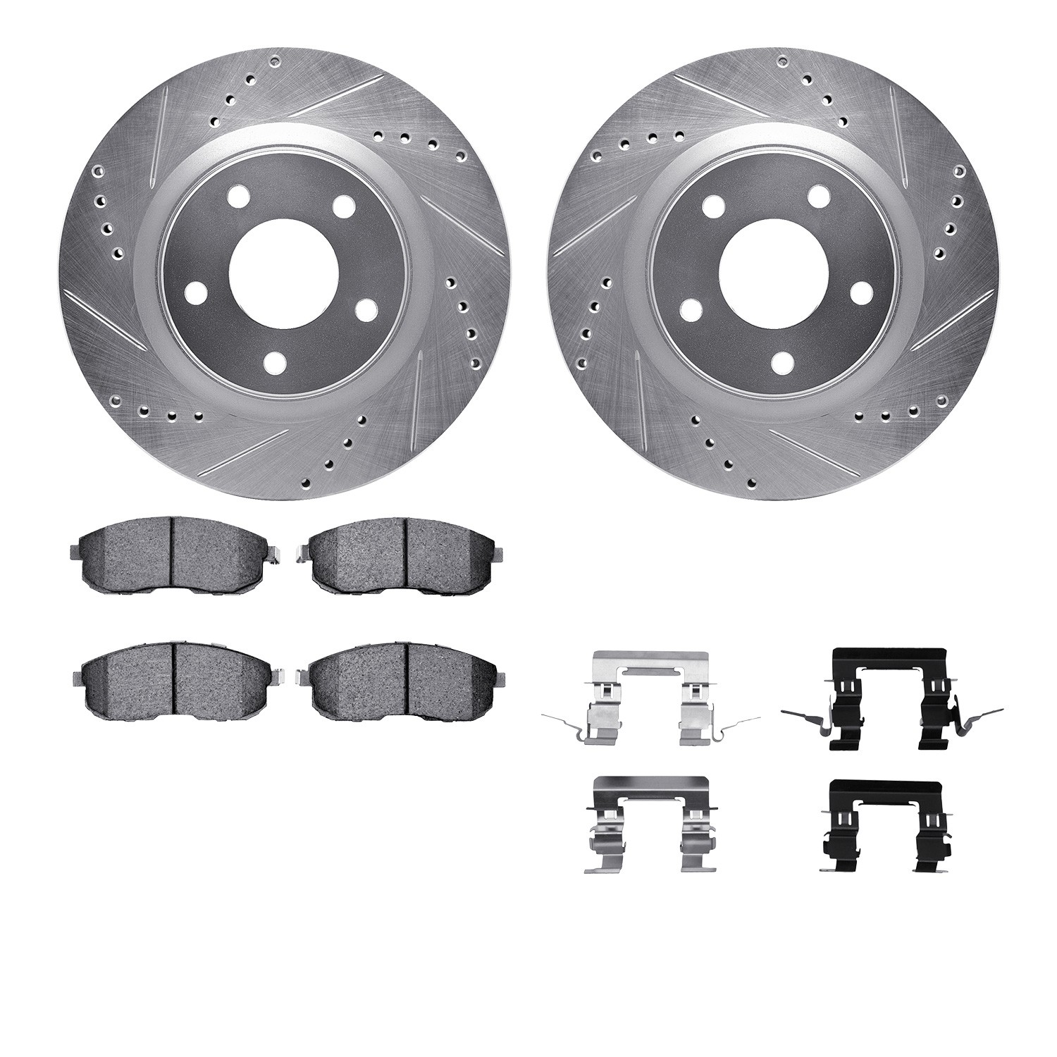 - DFC Rotors-Drilled & Slotted-Silver w/ EURO 5000 Ceramic Brake Pads Incl Hdw