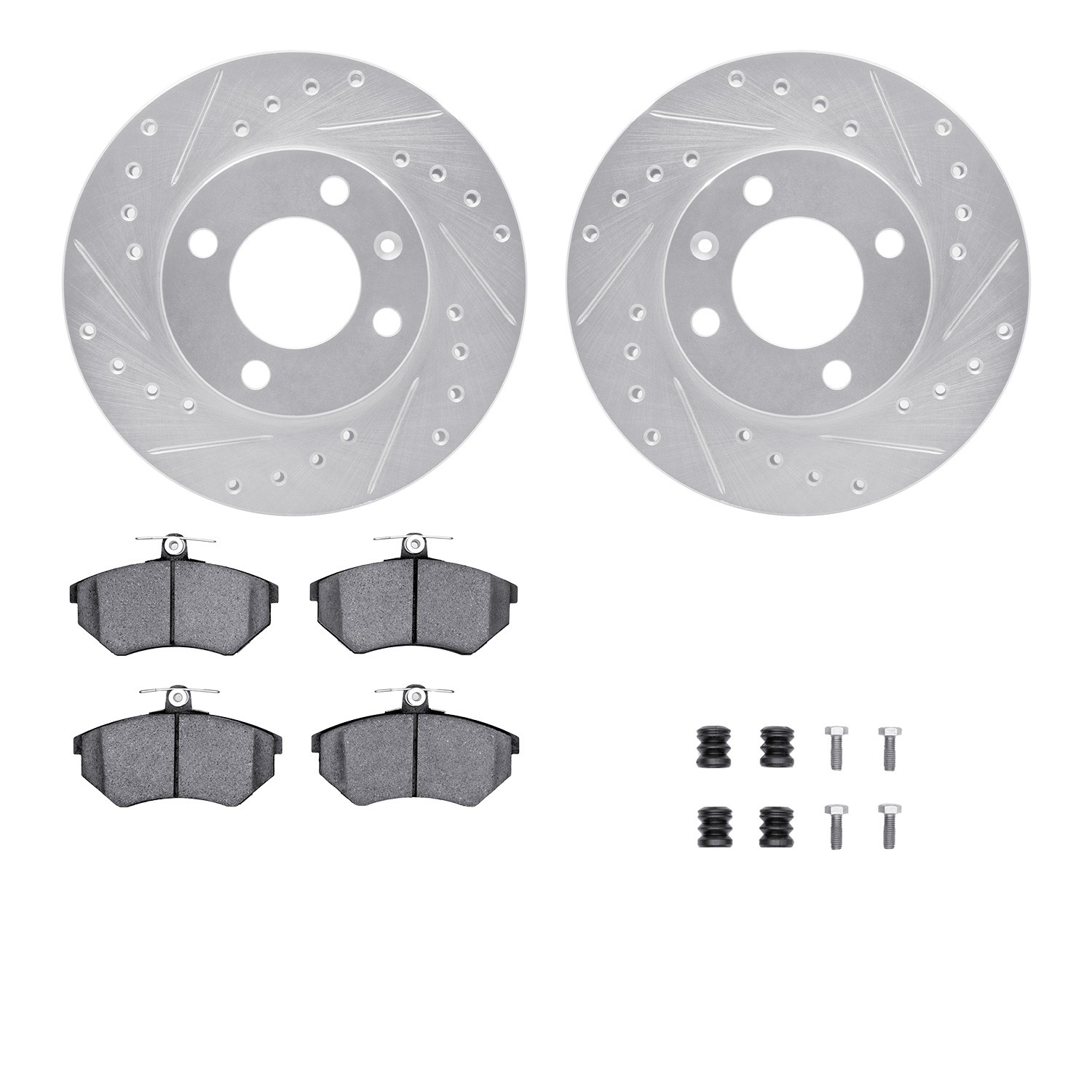 - DFC Rotors-Drilled & Slotted-Silver w/ EURO 5000 Ceramic Brake Pads Incl Hdw