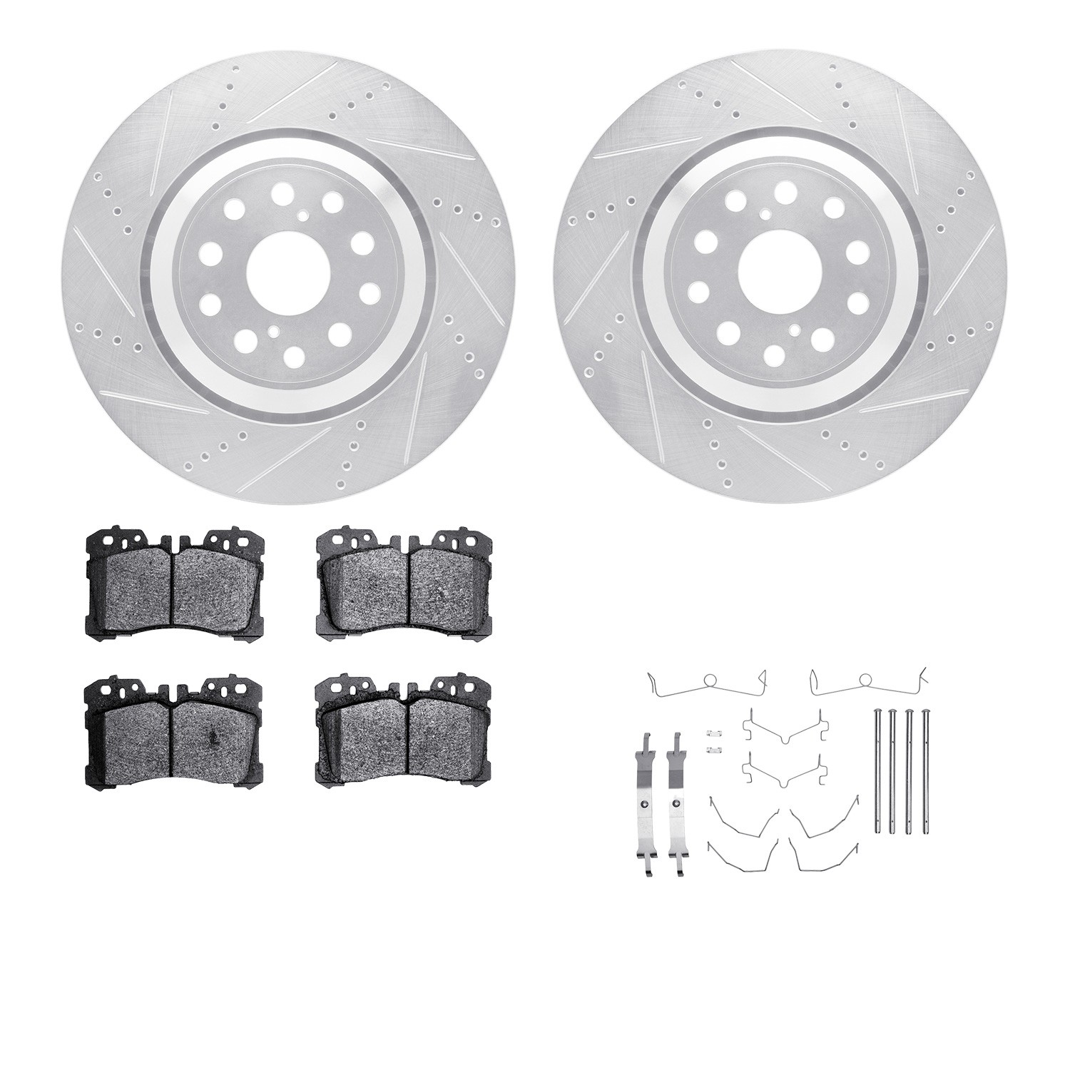 - DFC Rotors-Drilled & Slotted-Silver w/ EURO 5000 Ceramic Brake Pads Incl Hdw
