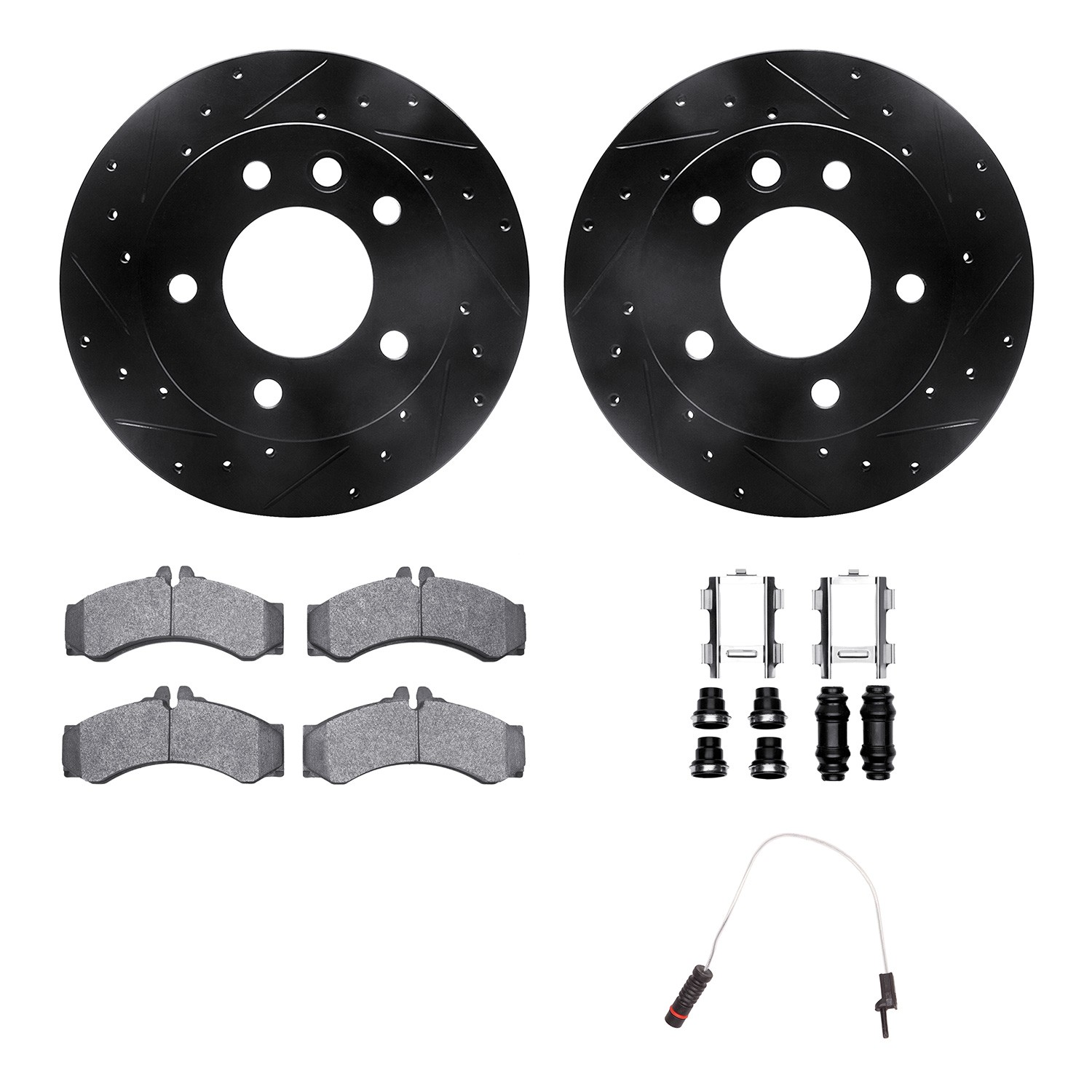 - DFC Brake Rotor - Drilled & Slotted - Black w/HD Brake Pad w/HW Kit & Sensor